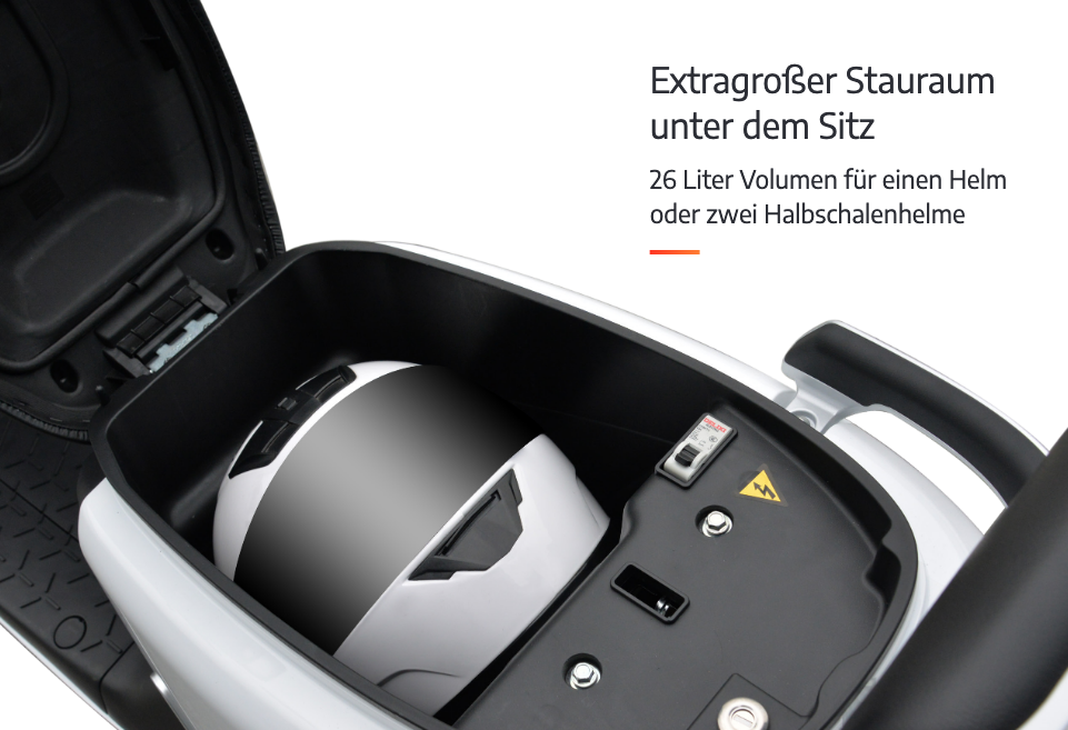 Was sofort ins Auge sticht, das große Staufach mit 26 Liter, 7Zoll Display, Seiten und Hauptständer.