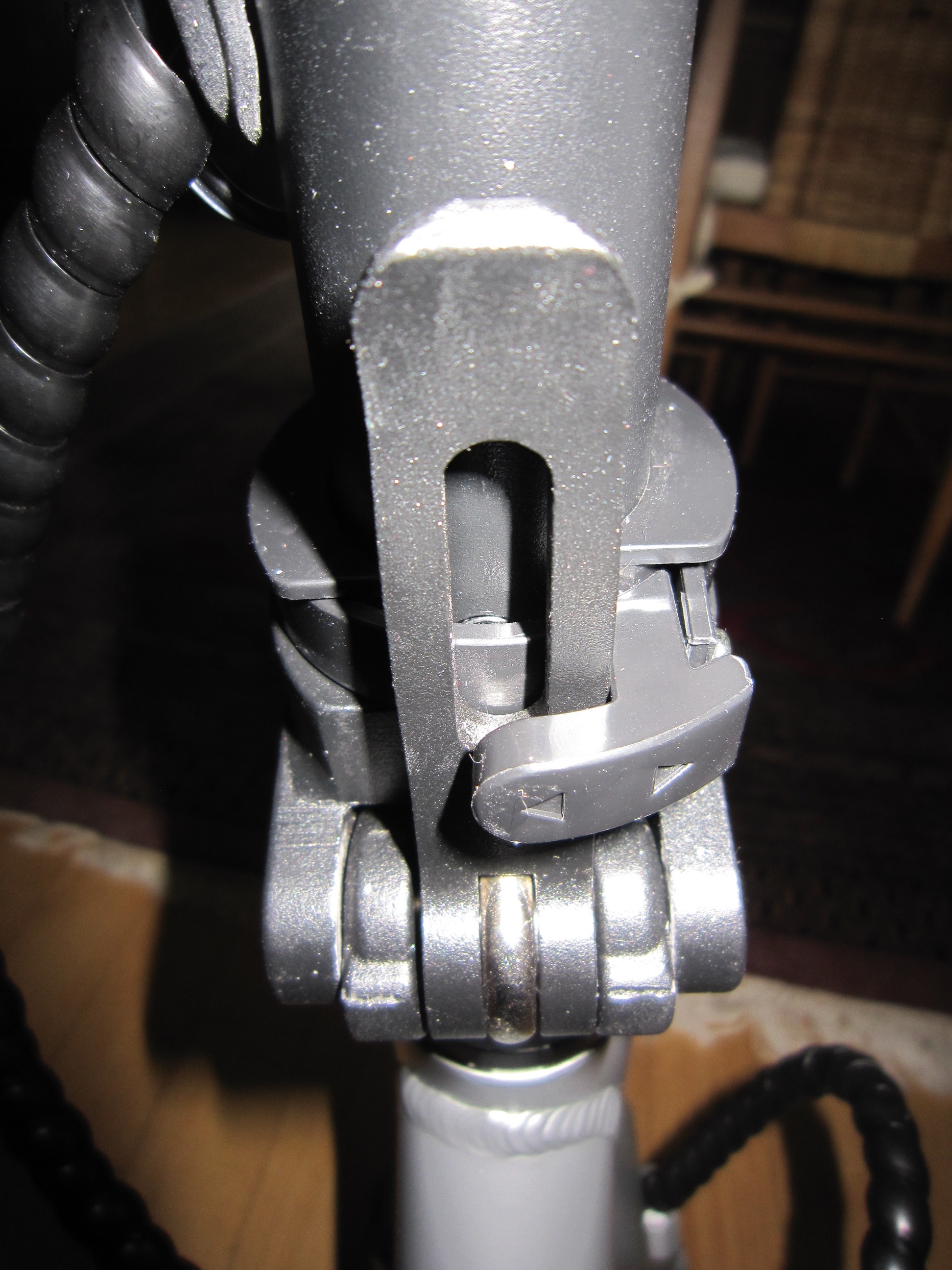 Wenn man die Lenkstange aufrichtet, muß man sie so weit nach vorne stellen, bis sie vorme „einschnappt“ (leider kein Bild von Vorne vorhanden, ich werde das bei nächster Gelegenheit nachholen).