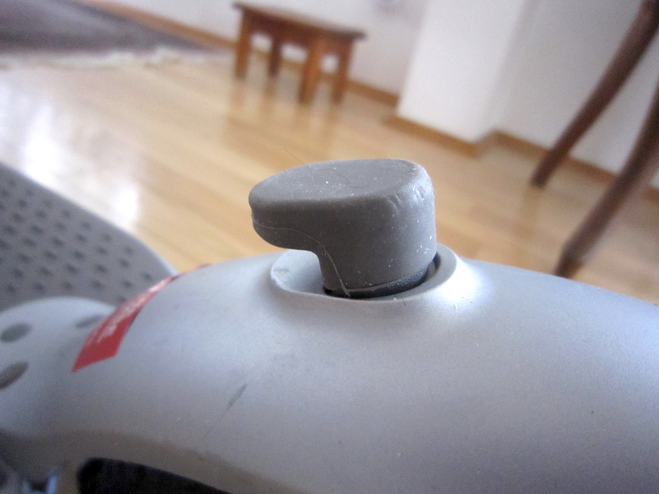 Leuchtet die LED grün ist das Ladegerät entweder nicht angeschlossen oder der Ladevorgang ist abgeschlossen, leuchtet sie rot ist der Roller noch am Laden. Da es sich um Lithiumakkus handelt, braucht man nicht immer vollladen, auch wenn das die Bedienungsanleitung empfiehlt. Bei längerer Fahrpause (> 1 Monat) sollte man auch das Nachladen nicht vergessen, wenn man eine möglichst lange Akkuhaltbarkeit erreichen möchte. (Dazu bitte die Vorschläge in der Bedienungsanleitung beachten). Leider ist es mir nicht gelungen ein Bild vom RCA-Stecker zu machen, silberne Sachen (wie z. B. auch die Schraube vorne am Lenkstangenverschluß) sind schwer mit Blitz zu fotografieren, da wird das Bild von der Refelxion des Blitzes überlagert und häufig unscharf, daher muß ich diese Bilder vorerst schuldig bleiben.