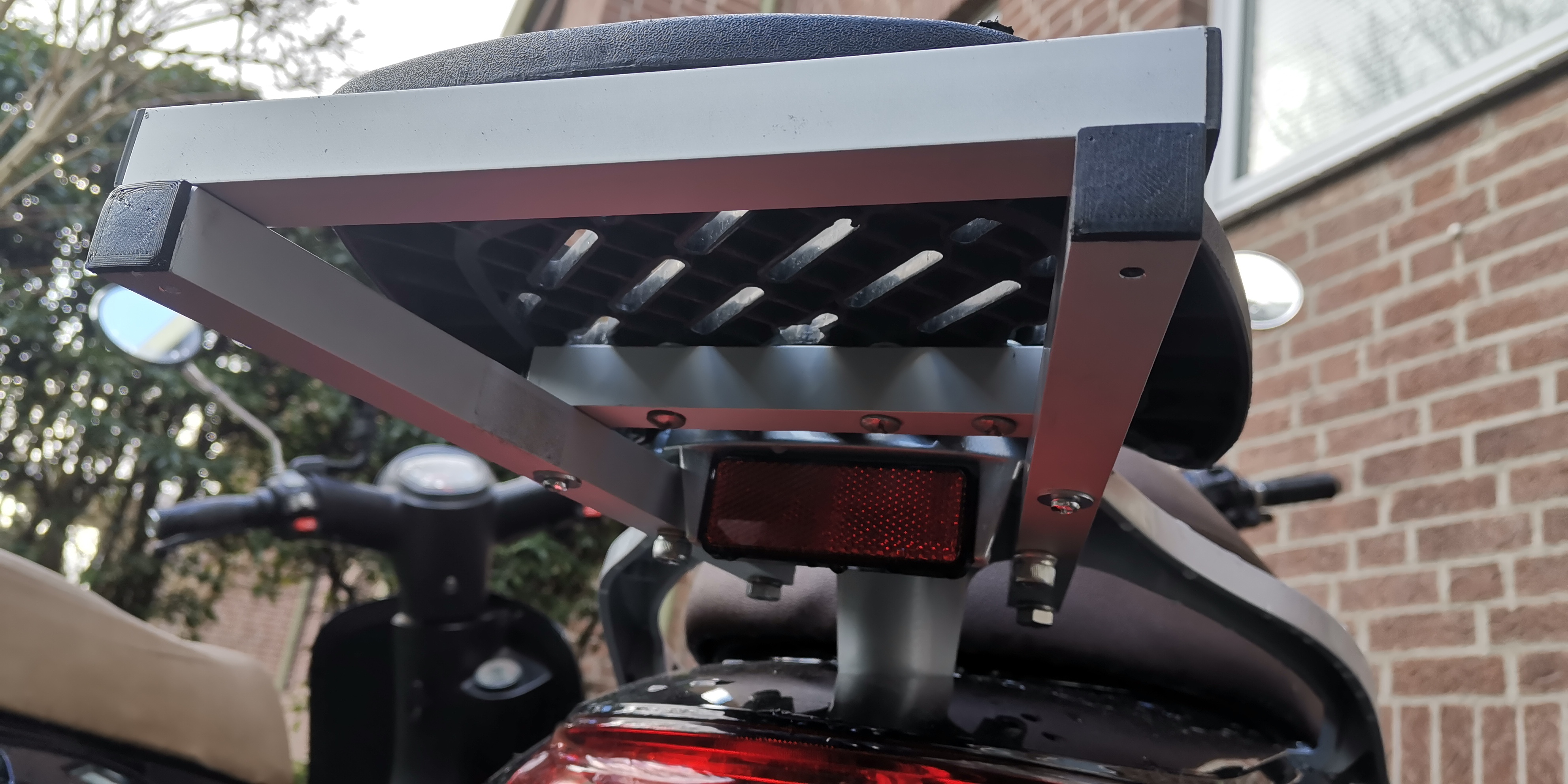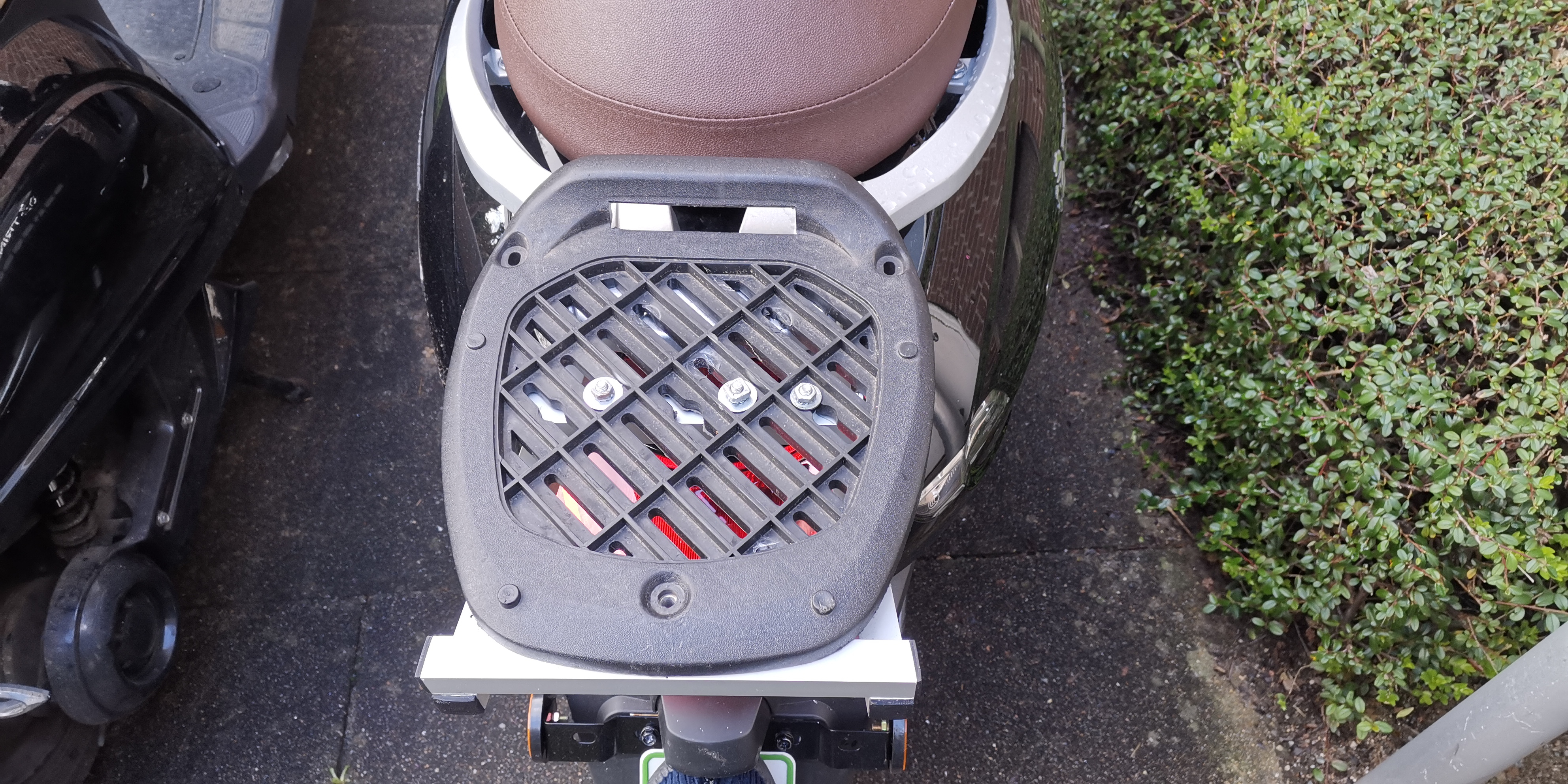 Mit ein paar Schrauben aus dem Baumarkt ließ er sich auch super befestigen und mein Top Case sitzt nun Bombenfest auf dem Roller.