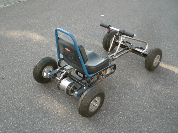 habe mir und meinen Kids ein altes Kettcar umgebaut auf einen 800W- Antrieb der das Kettcar ganz