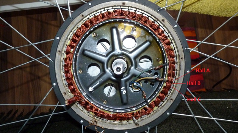 Fazit: Du kannst die 3 Hallsensoren außerhalb des Motors anbringen, mußt aber auch 40? - ensprechend der Anzahl der Rotormagnete - kleine Magnete außen anbringen......