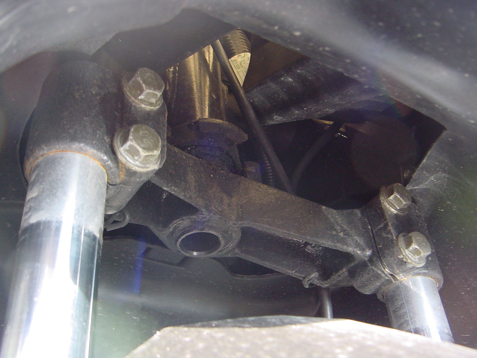 Hier die popelige Thunder Gabelbrücke mit dem unteren Lenkkopflager:
