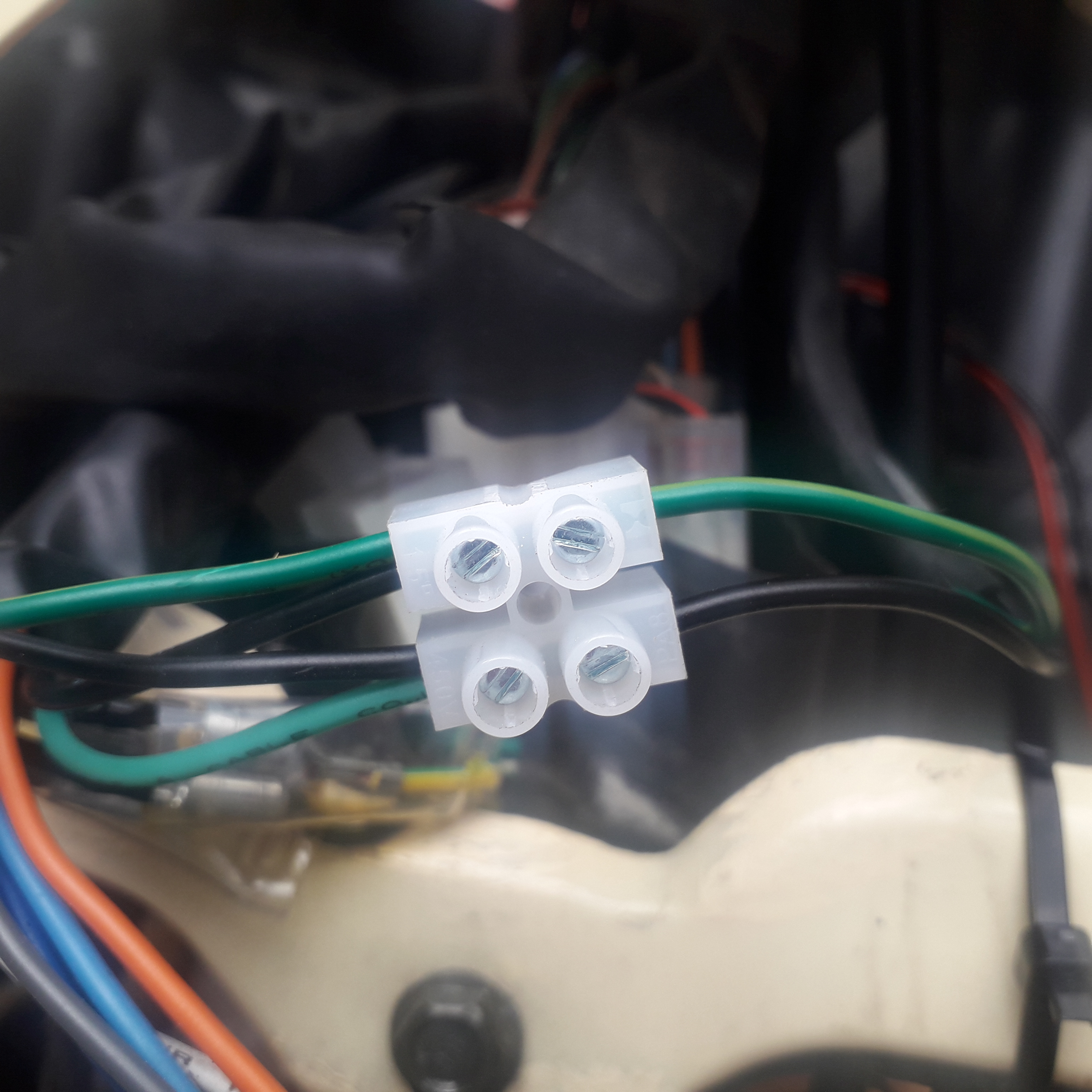 Aus dem linken Bremslichtschalter kommen ein schwarzes Kabel und ein grün/hellgrünes.