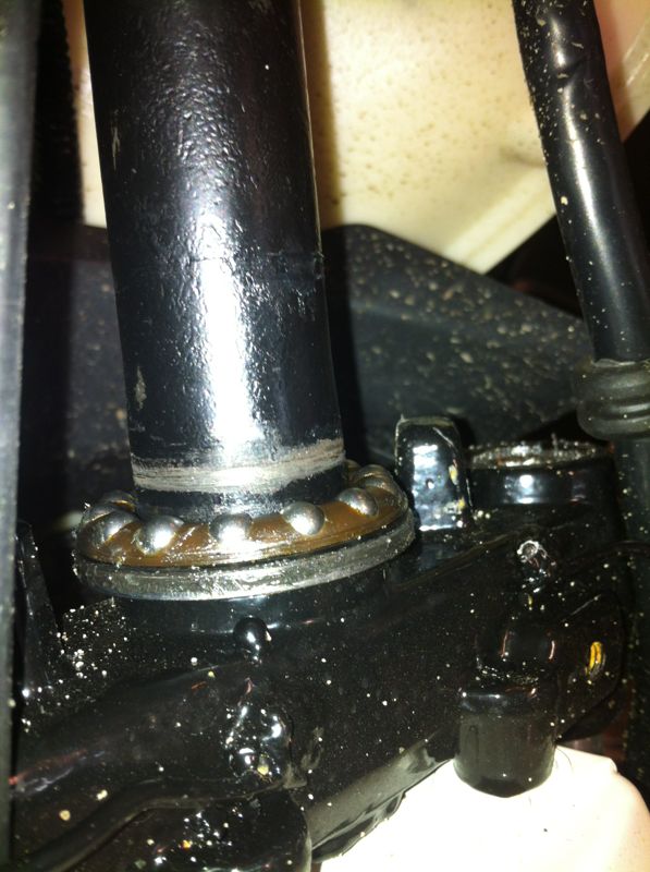 - die lenkkopfkugellager (oben und unten) waren furztrocken und musten erst mal wieder schön eingefettet werden. - die verbindungsschraube die lenker und gabel miteinander verbindet war dagegen zwar schön mit fett eingeschmiert. aber ganz schön verbogen.. hab ich ganz schön angst bekommen beim austauschen.