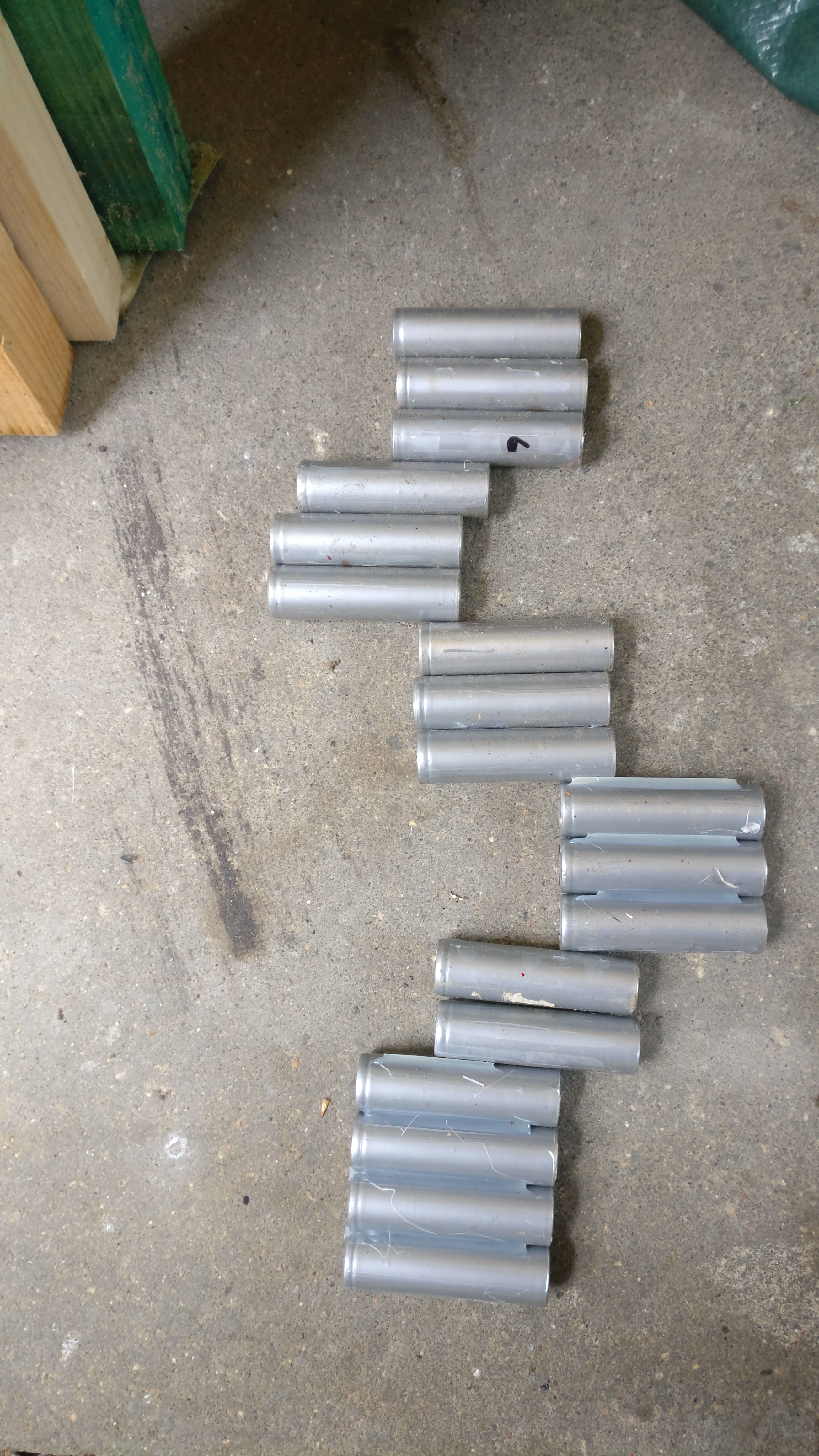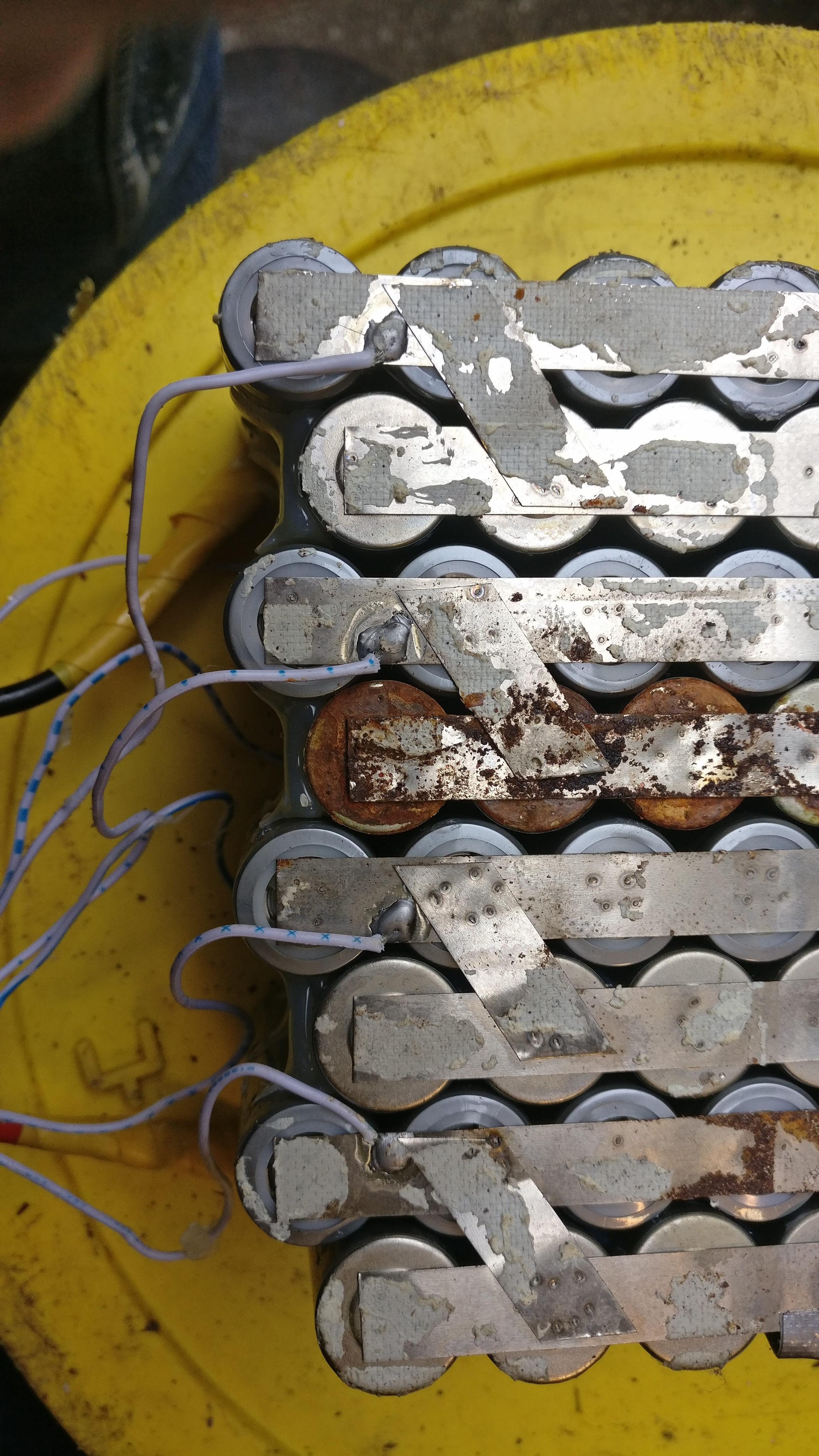 Von den 72 Zellen hatten 20 gut Ausschlag in alle Richtung und Rost. Ein paar hatten um die 0,8 V, ein paar sogar 1,7 bis 2,2V. Ende vom Lied, ich habe 18Stück mit 3,76 V und der Rest geht in die Tonne. Aus 2 alten Laptopakkus könnte ich auch noch 6 von 24 Stück retten.