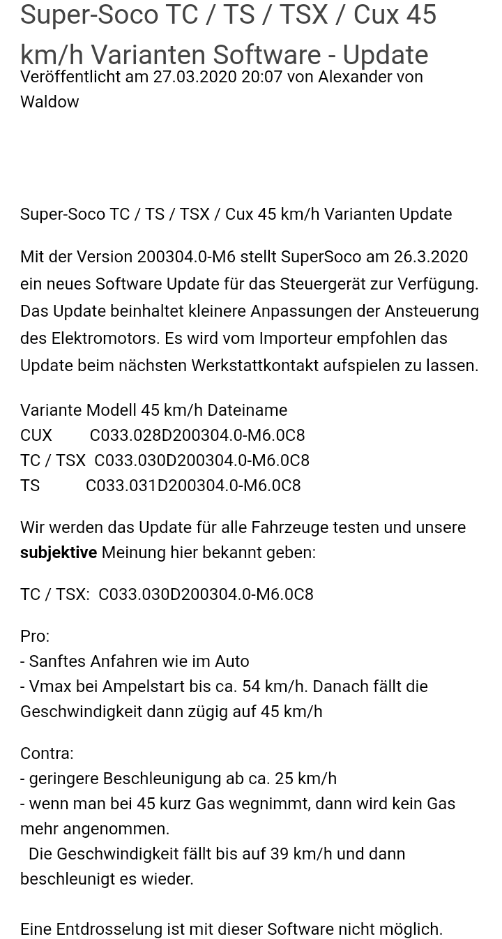 Mir ist auch eine ENTdrosselung wichtig, ist das mit den neuen Modellen noch möglich? Komme aus Bremen, wo bekomme ich ein TC am besten her, sind laut Suche 3 Händler in der nähe.