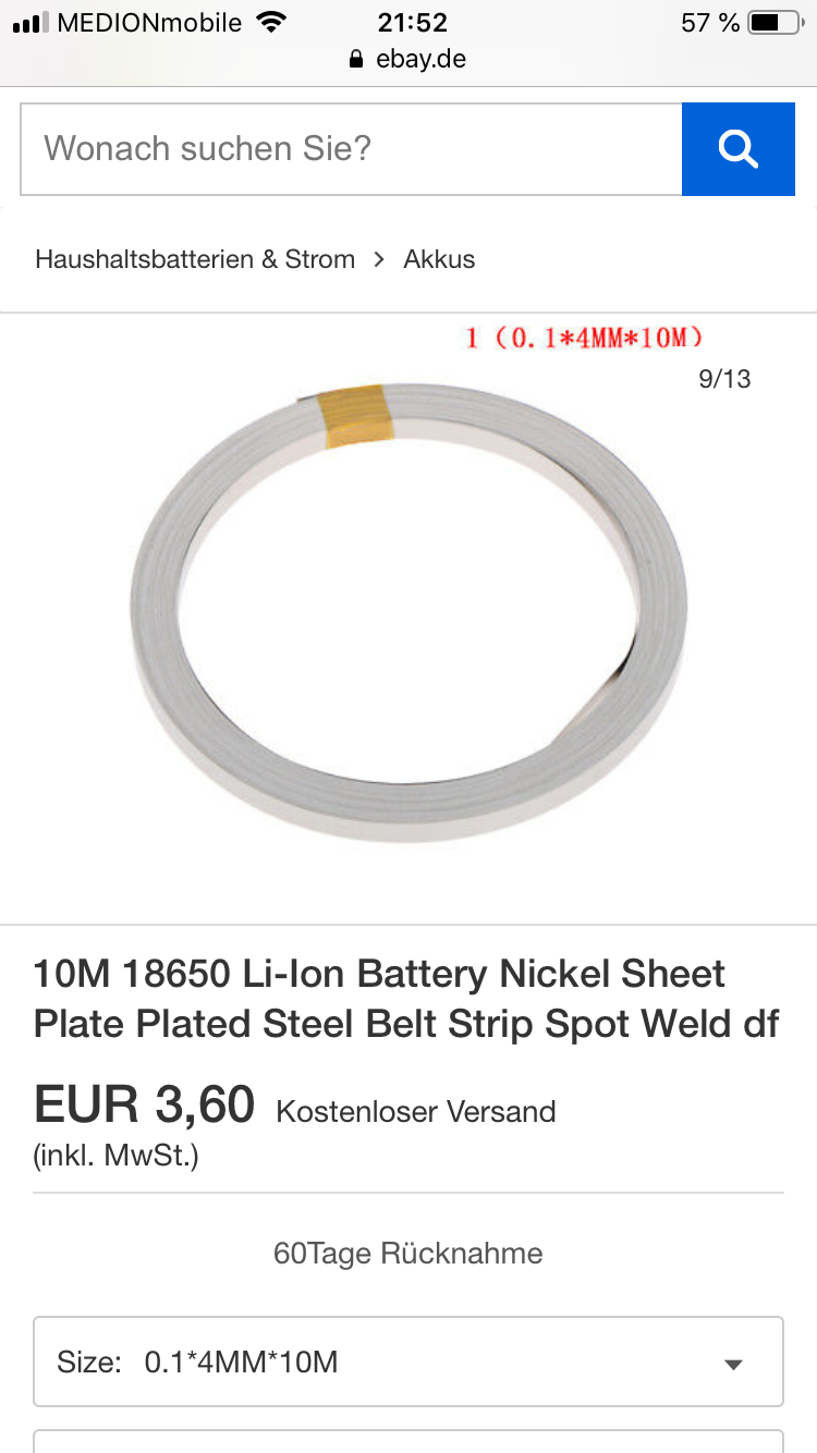 Ich werde, sobald die Teile da sind erst mal schauen wieviel Batterien ich platzmässig parallel schalten kann, weil die 17s sind ja vorgegeben....und dann erst mal den Akku schweißen.