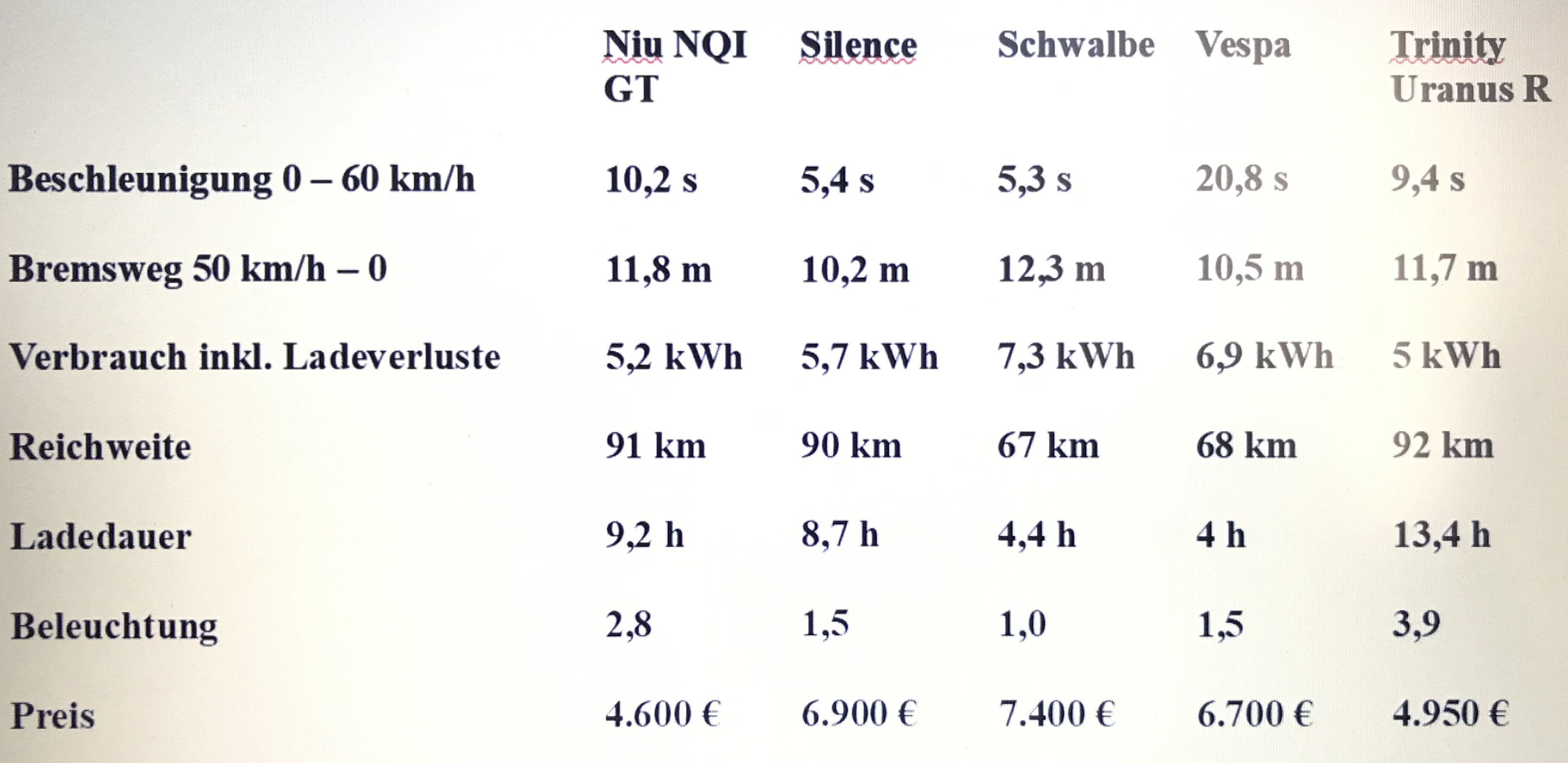 Niu nur 4.Platz, wegen langer Ladedauer & Ergonomie für große Fahrer