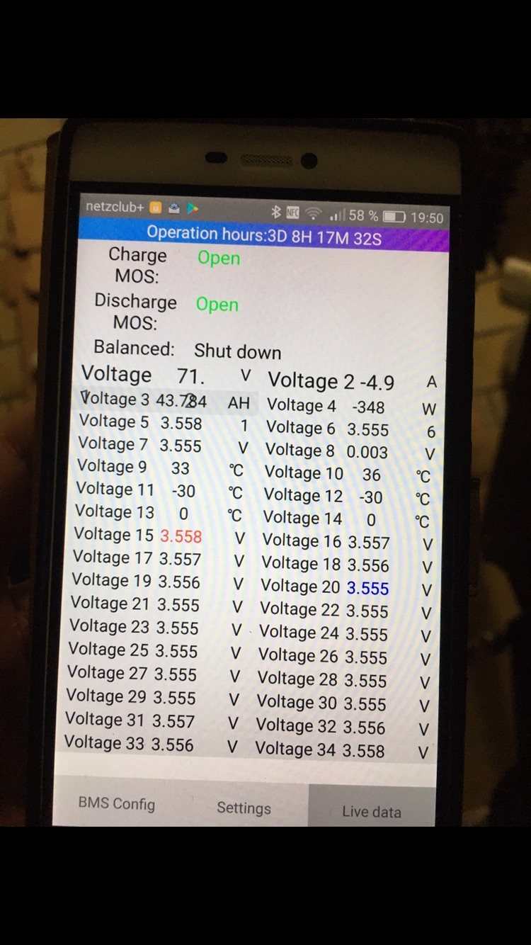 auf die zellen des zusatzakkus und B- am BMS nur 61 volt gemessen.