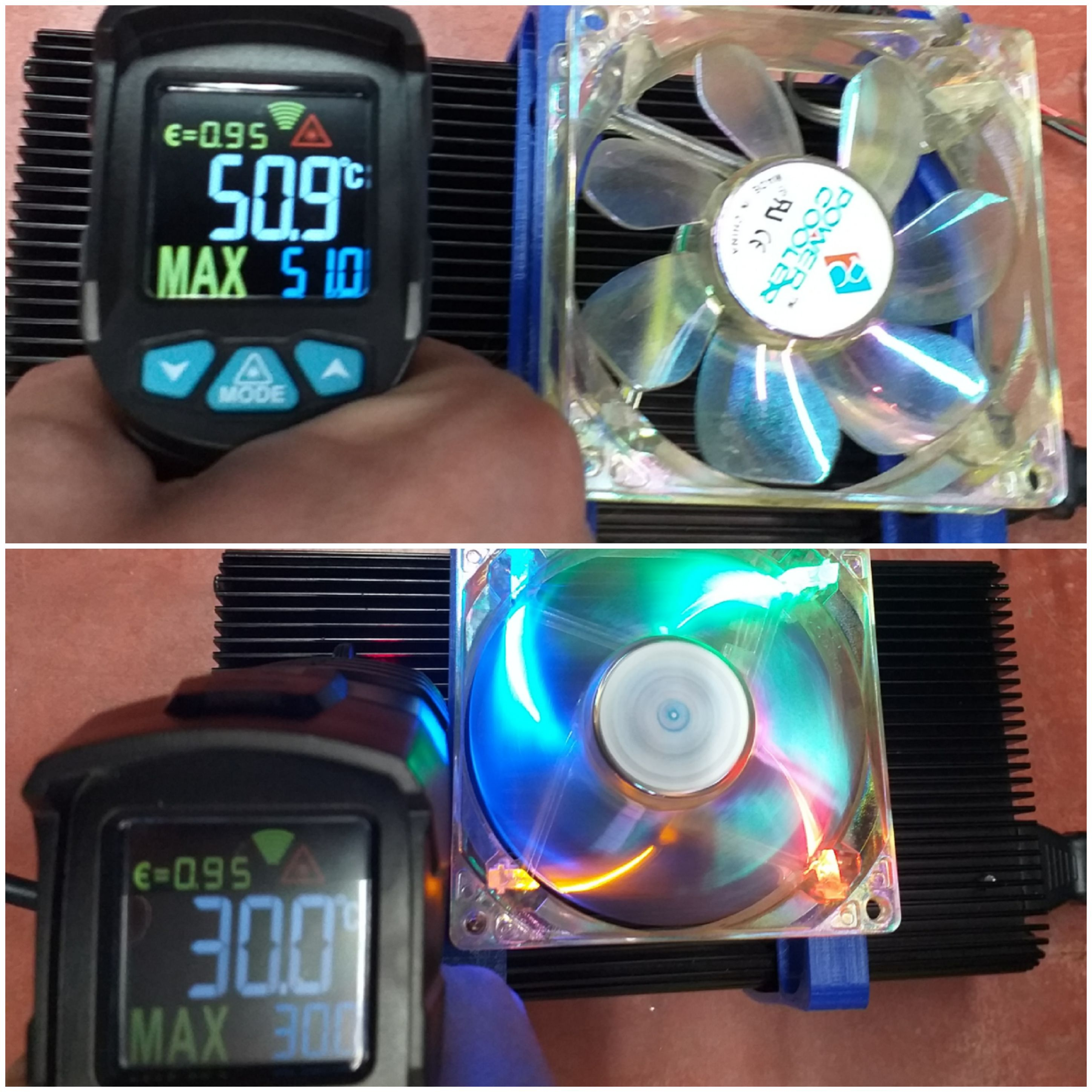 Für beide Messungen habe ich den gleichen Messpunkt genommen. Dieser war auch die wärmste Stelle, die ich ermittelt hatte.