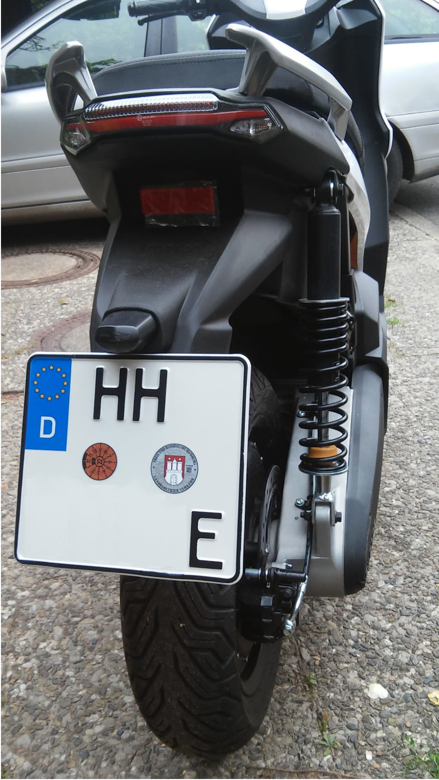 Habe heute endlich meinen Silence S01 zulassen können (ging ohne Probleme, nur etwas Wartezeit, da Importfahrzeug offenbar "Chefsache" bis zu einem bestimmten Grad) - und somit liegt jetzt vor mir ein Kennzeichen 200x180 (mit E am Ende, also leider breiter als hoch, aber immerhin nicht das 220er oder noch breiter), welches am dafür vorgesehenen Kotflügel (heißt das so bei Rollern?) angebracht werden will.