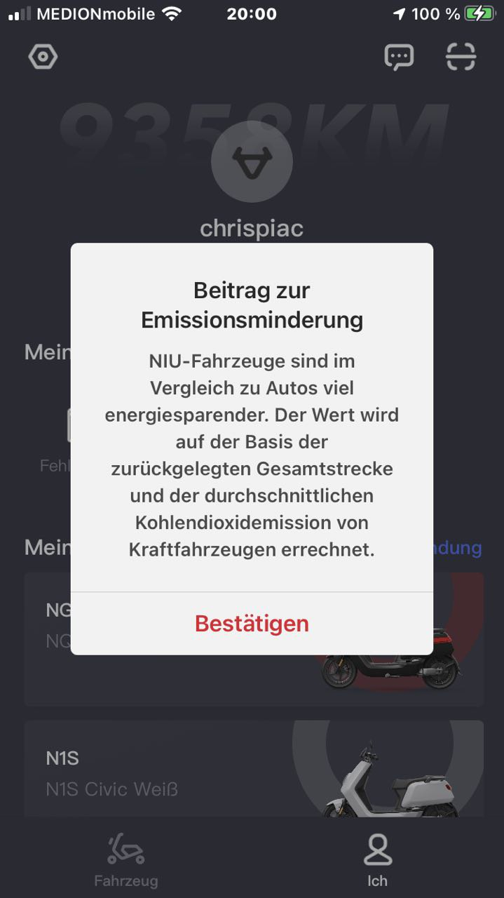 Na ja, das soll ja ein Vergleichswert zu einem (Verbrenner-) Auto sein. Wenn man dann ein Dieselpanzer mit den leichten NIU vergleicht…Lara hat geschrieben: Di 13. Okt 2020, 20:40 Ich hatte das gesehen, aber nicht mit dieser Kilo Angabe in Verbindung bringen können...