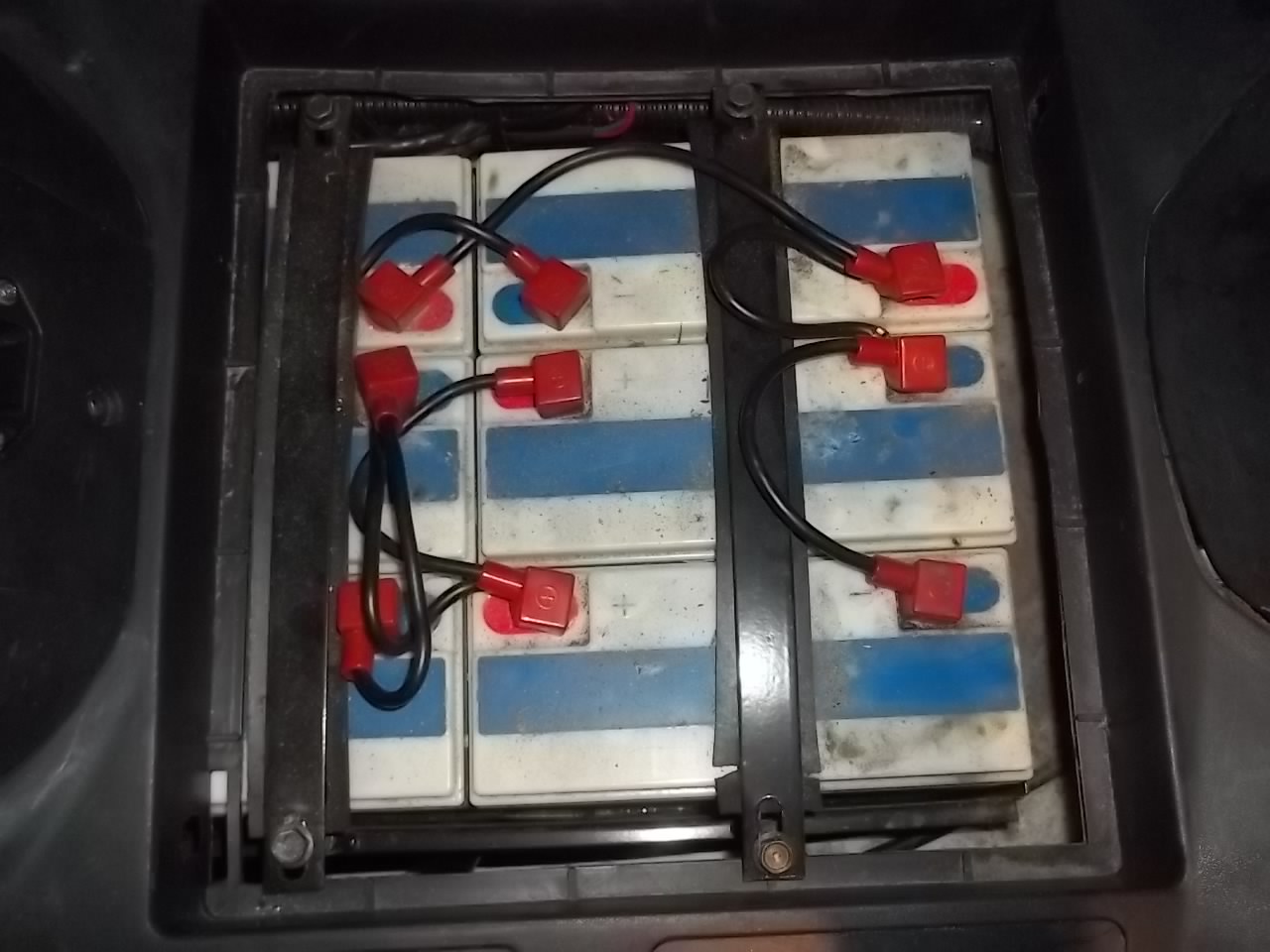 Aber kann das denn? 6 Akkus? ( Weiße Umrandung mit blauen Streifen und Anschlüsse sind zur Verschraubung)