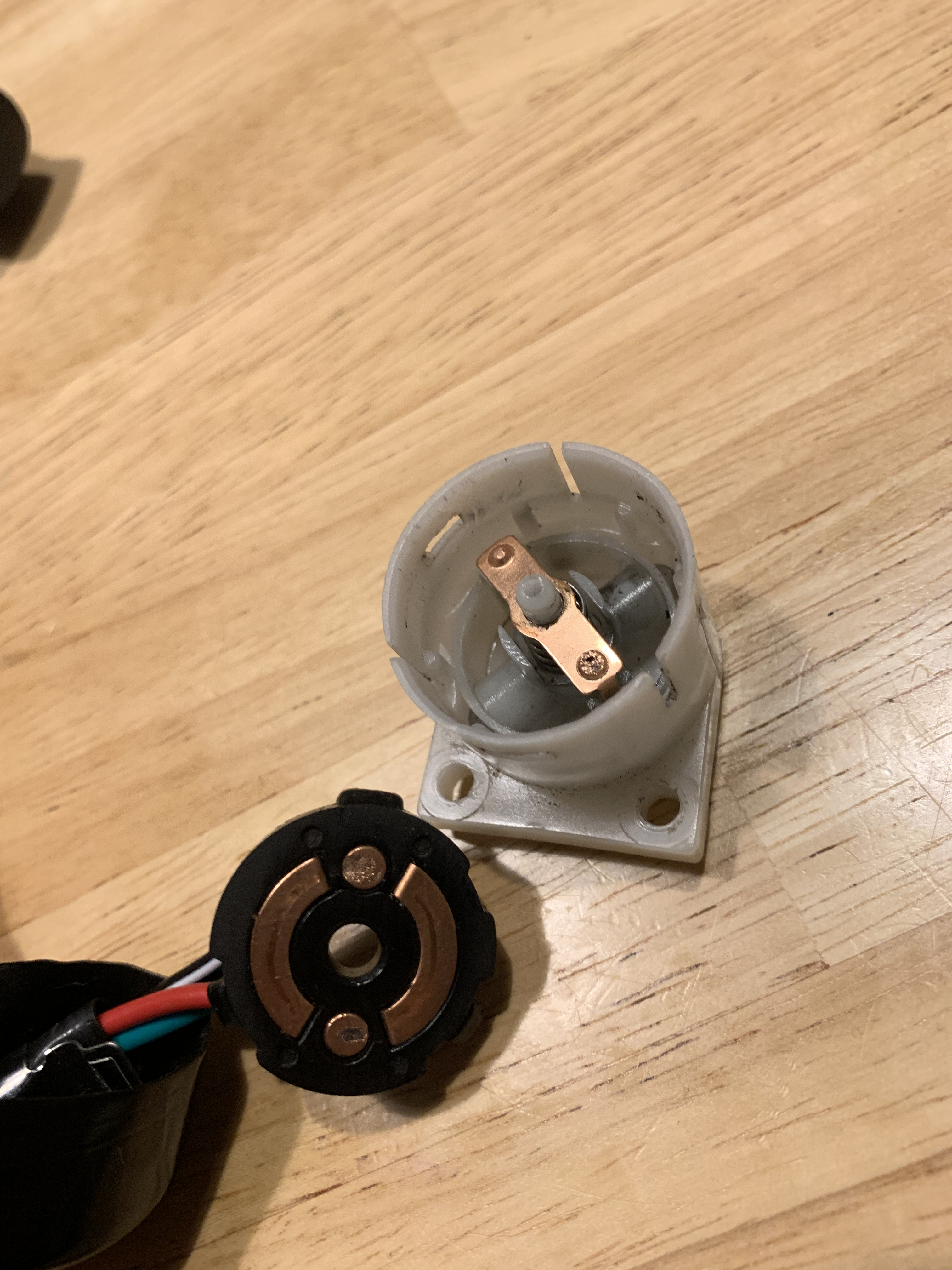 Da der Service im Moment ja nicht ausrückt, ich aber auf den Roller angewiesen bin habe ich selbst Hand angelegt. Ich bin relativ schnell auf den Zündschalter gekommen. Als ich diesen auseinandergenommen habe viel mir auf das einer von zwei Kupferkontakten extrem verschlissen war.