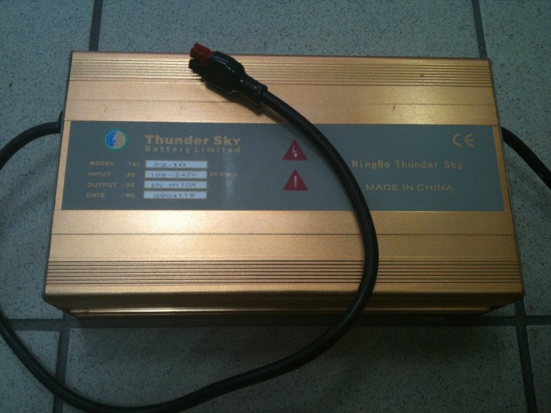 Dieser Thundersky-Lader geht bis 86,5 Volt und macht 3A am Netz, dann schaltet er ab.