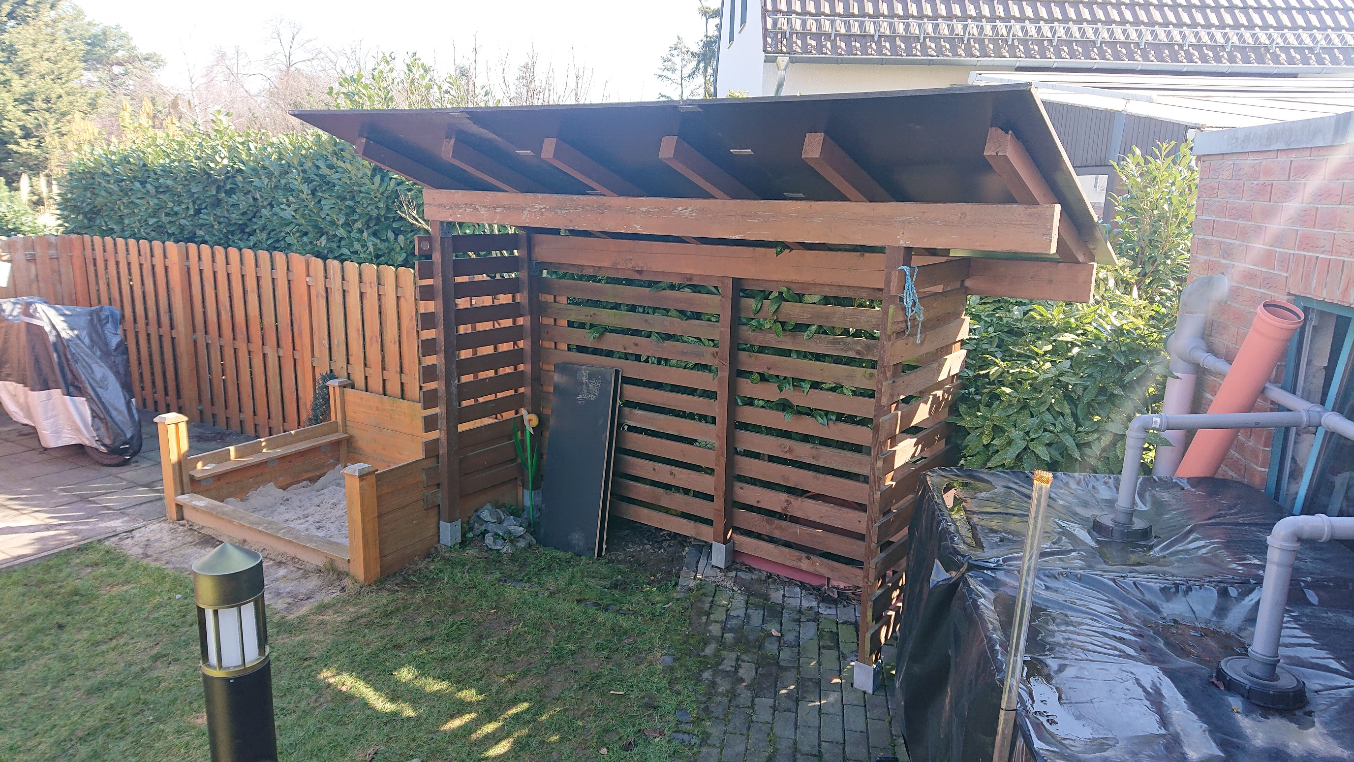 ich habe mir einen Unterstand für den Roller gebaut da er nicht mehr in die Garage passt weil wir jetzt ein größeres Auto haben.