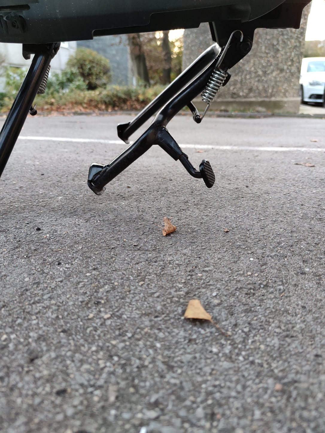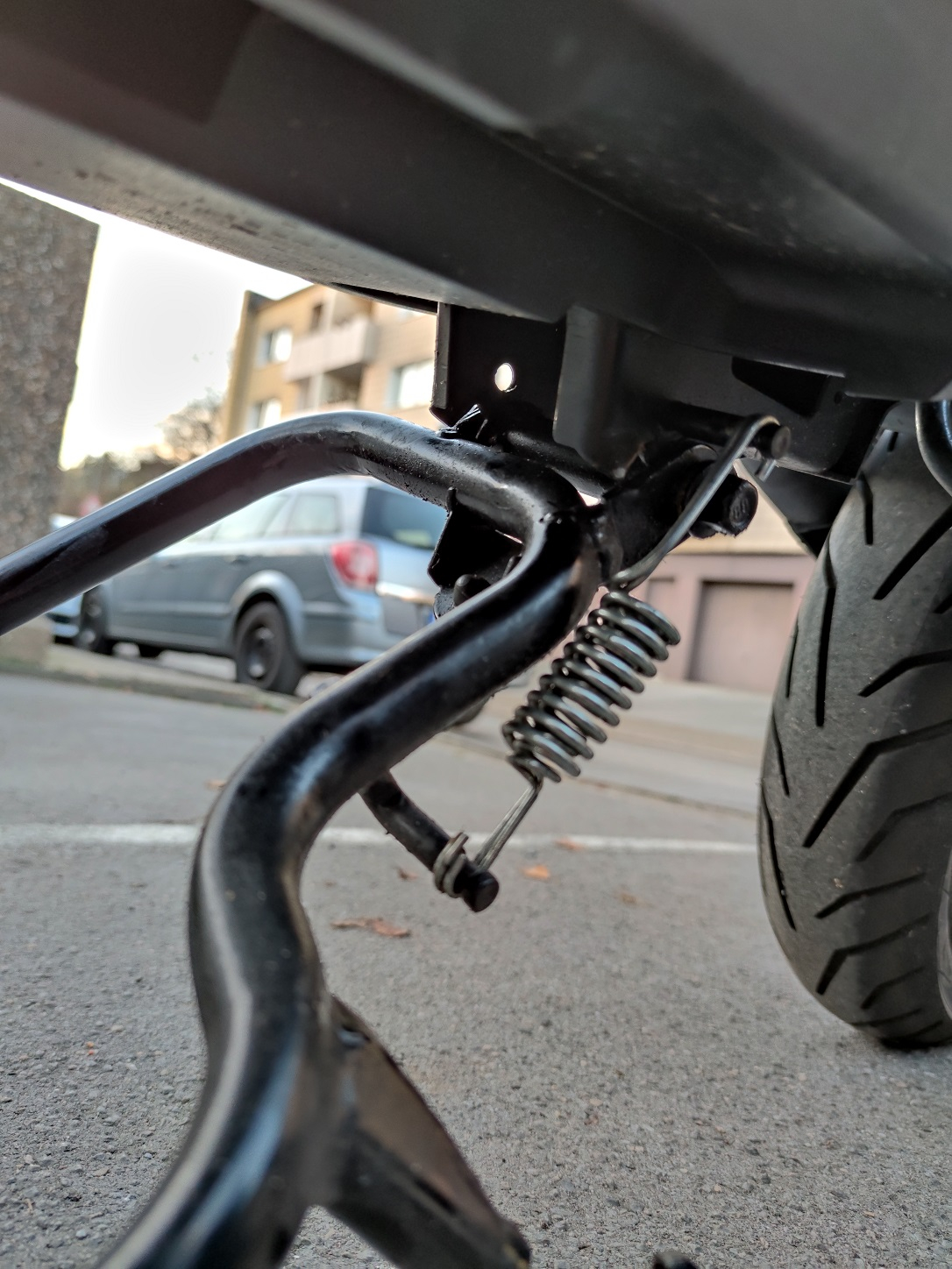 Es scheint wohl als sei am Roller ein verschweißtes Teil abgebrochen, welches als "Arretierung" diente und dadurch der Hauptständer nach dem klappen durchklappt und somit nicht mehr hält.