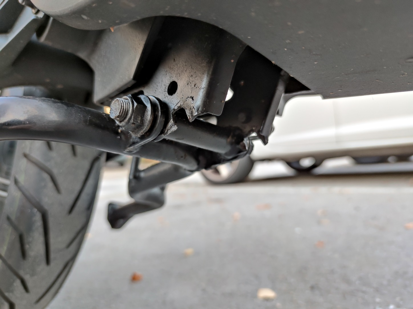 Je nachdem, ob du die Information noch brauchst: Ich hatte das gleiche Problem und das abgefallene Teil musste einfach wieder angeschweißt werden. Wurde einfach ksotenfrei wegen Garantie beim Händler gemacht. Bei mir war der Auslöser, dass ich den UQi einfach falsch "aufgebockt" habe, da ich ihn mit Schwung auf den Hauptständer befördert habe, anstatt ihn mit Gefühl hinten anzuheben.