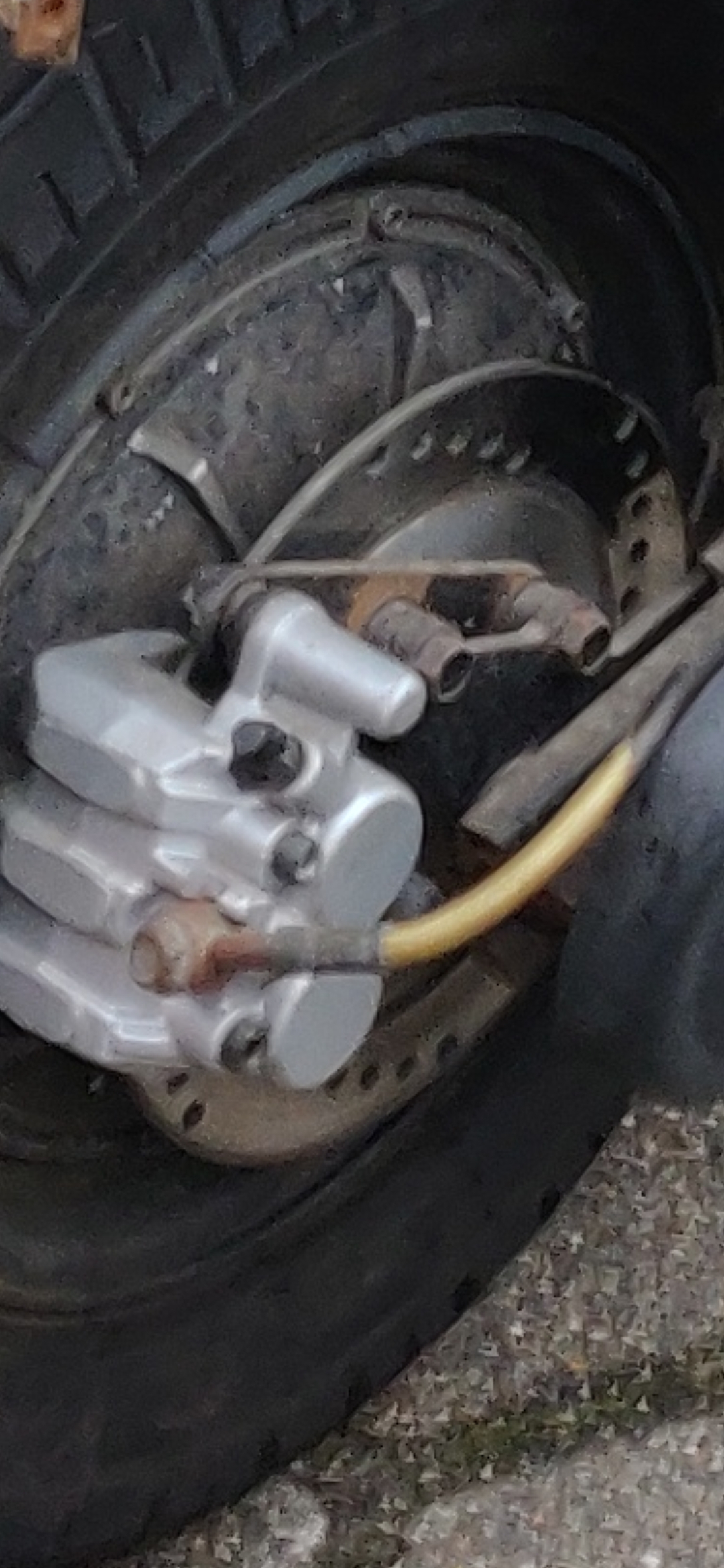 Meine Vorredner haben auch schon richtig gesagt das die bremse am Roller mit einem Schwimmsattel ausgestattet ist. Das ist nicht so wie bei den fahrrädern die eine Festsattel mit nur einem Bremskolben auf einer seite haben.