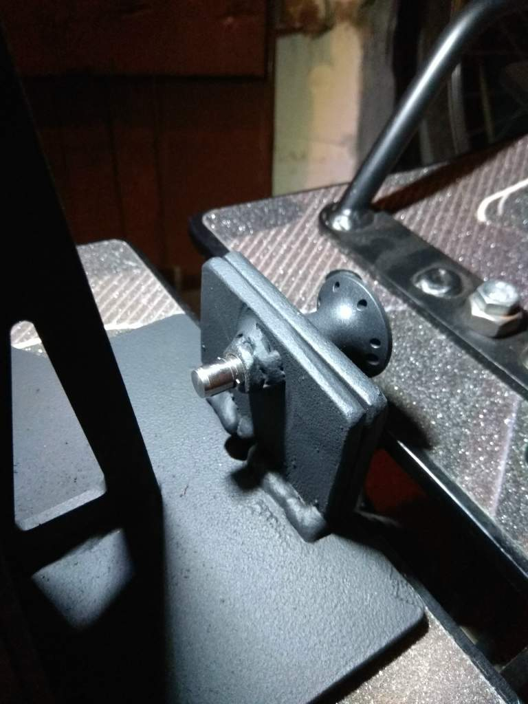 dazu hab ich eine 5 mm starke platte an den batteriekasten angeschweißt und eine zweite platte an den sattelfuß, dazu den passenden sperrbolzen zur sicherung mir vorher besorgt und heute mal fix alles geschweißt. musste natürlich auch am sattelfuß ein kleines stück ausklinken und auch am trittbrett aber wie man sieht passt perfekt. der sperrbolzen hat nur sehr sehr wenig spiel. gerade so das er reingeht. das sitzt so bombenfest. lange hätte die verschraubung das nicht mitgemacht.