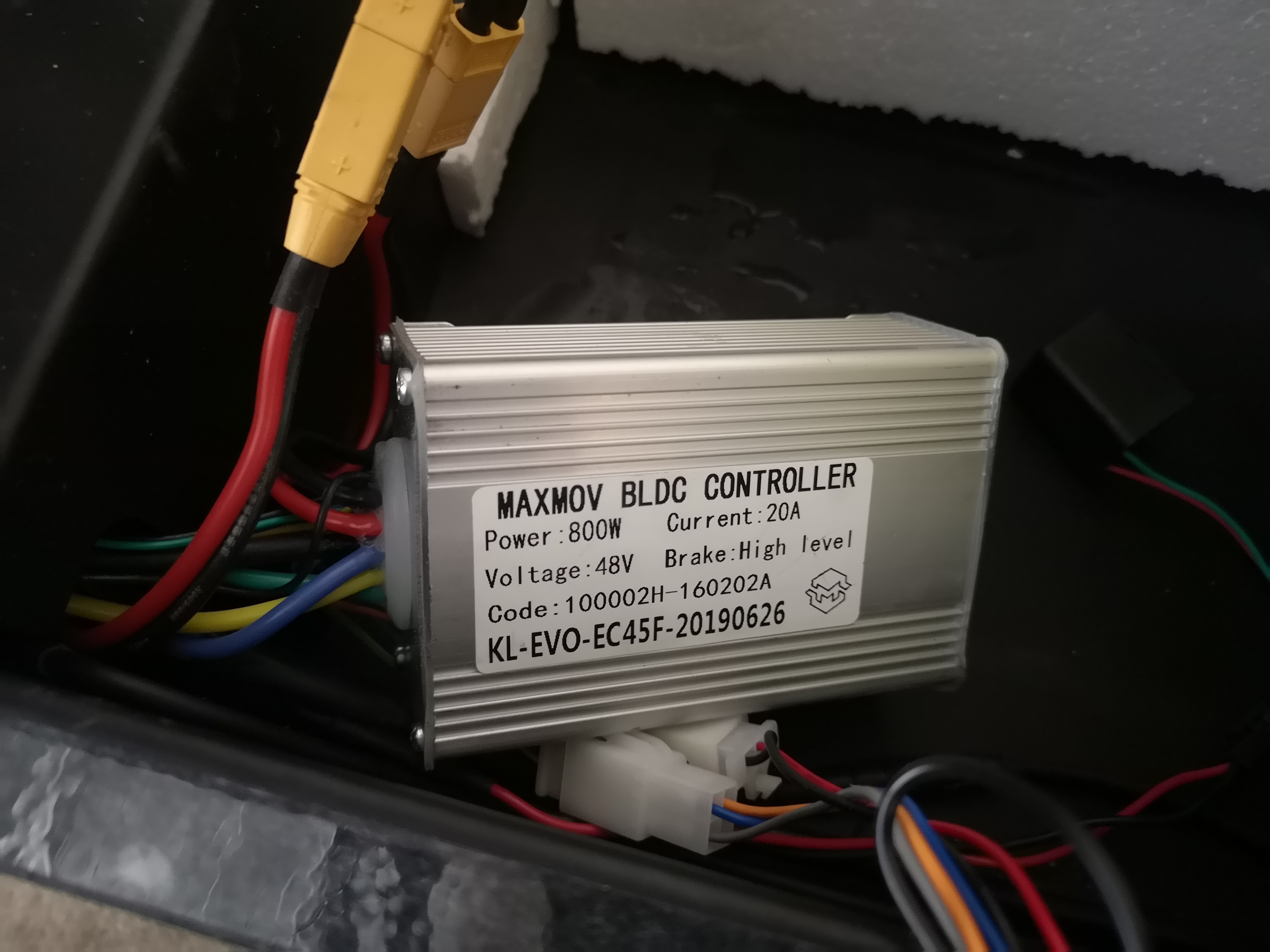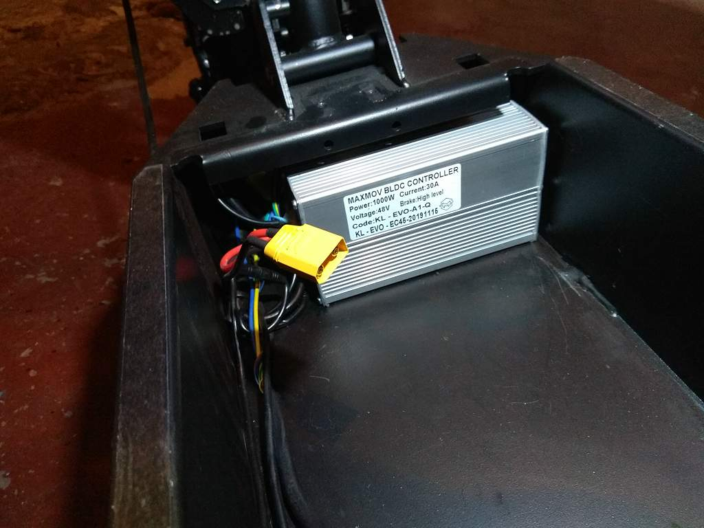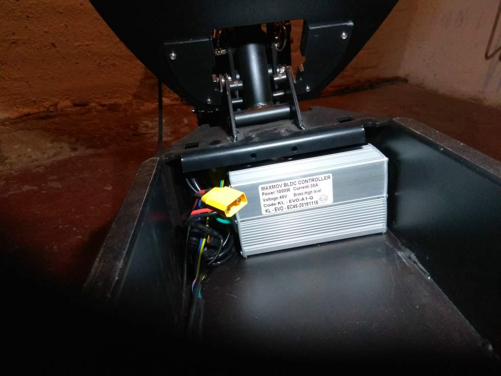 ps: ein ganz kleiner umbau am akku-stecker war nötig da der 52 volt akku eine mordsgroße 70 ampere sicherung hat mit dem entsprechend großem stecker dazu. aber kein problem. beim akku war ein adapter dabei der durch eine kleine 10 minütige lötaktion angepasst werden kann so das man alles ordnungsgemäß sauber zusammenstecken kann.