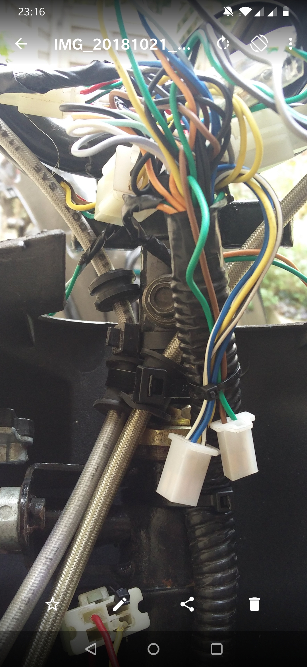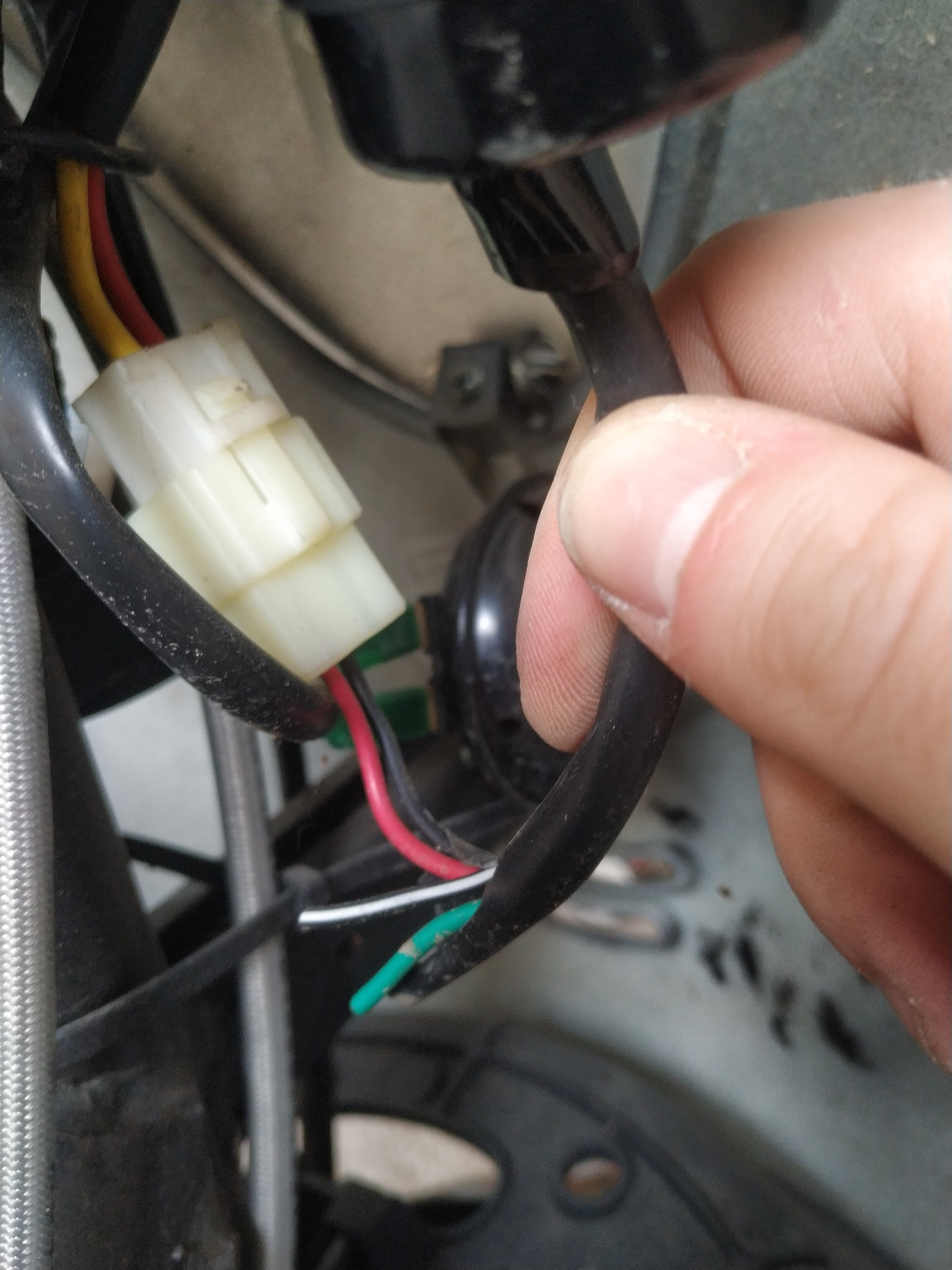 weiß-grün (Rückleitung vom Zündschloss?) ist abgeklemmt (und war es auch schon im funktionsfähigen Zustand).