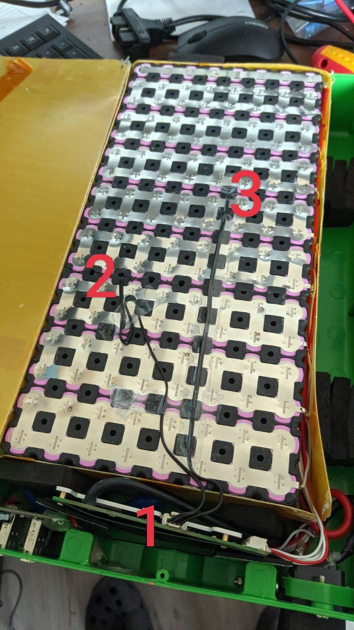 Kommen wir nochmal zu einem spannenden Teil, der Innenaufbau chinesischer Akkuboxen. Der hat in einigen Fällen durchaus einen hohen Unterhaltungswert, wild verlegte und gequetschte Kabel von den Zellen zum BMS, gerne mit Heißkleber in Position gehalten (ja, ok, der schmilzt erst ab 100°), billigstes Isolierband (kennt man aus dem Baumarkt, die Körbe vor der Kasse, in drei Farben 2.99€), das sich schon ab 50° in Schmiere verwandelt. Ob der verwendete Kleber chemisch mit den Kabelisolierungen interagiert oder sich zersetzt ist ein Problem, das erst dann möglicherweise auftritt, wenn der Akku schon in Europa ist (also so ähnlich wie damals beim UNU, wenngleich wir nicht die Ursache, sondern nur die Wirkung kennen ...). Leider gibt es Druckdateien bei thingiverse und Konsorten, mit denen man Zellenabstandshalter drucken kann, und PLA ist nunmal billig und mit den einfachsten Druckern zu verarbeiten, hat aber in Akkus nichts verloren, nur das weiß der dortige "Facharbeiter" nicht so aus eigener Anschauung, und wenn es doch weich wird, dann hat man ja immer noch die Zellenverbinder, die für eine gewisse Stabilität sorgen. Was soll da schon passieren ...