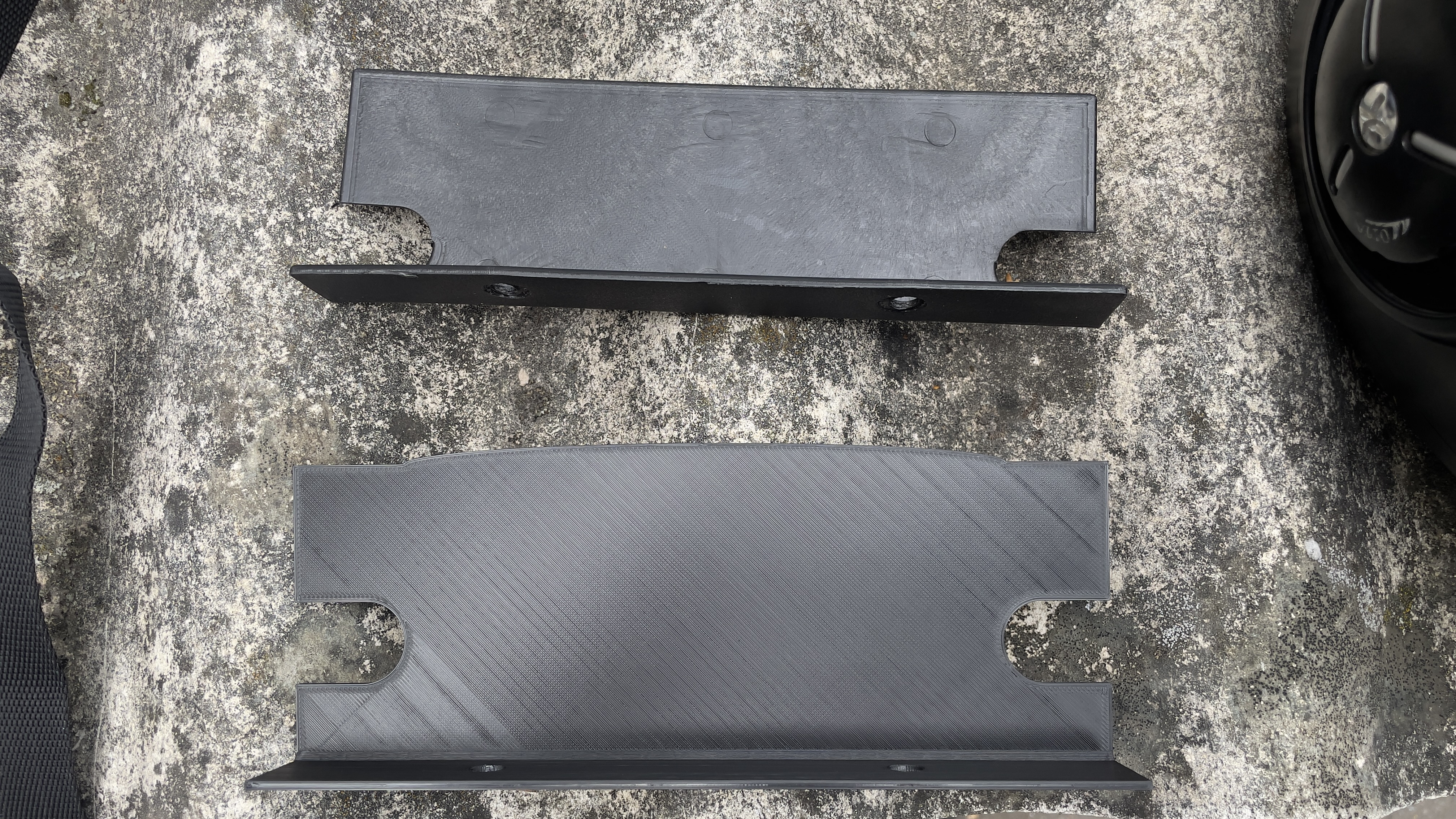 Unten dementsprechend mein gedruckter Prototyp. Hat schon mal so gut gepasst das der erst mal eingebaut ist. Aber muss ich noch mal machen da ich oben den Radius an die Abdeckung anpassen muss.