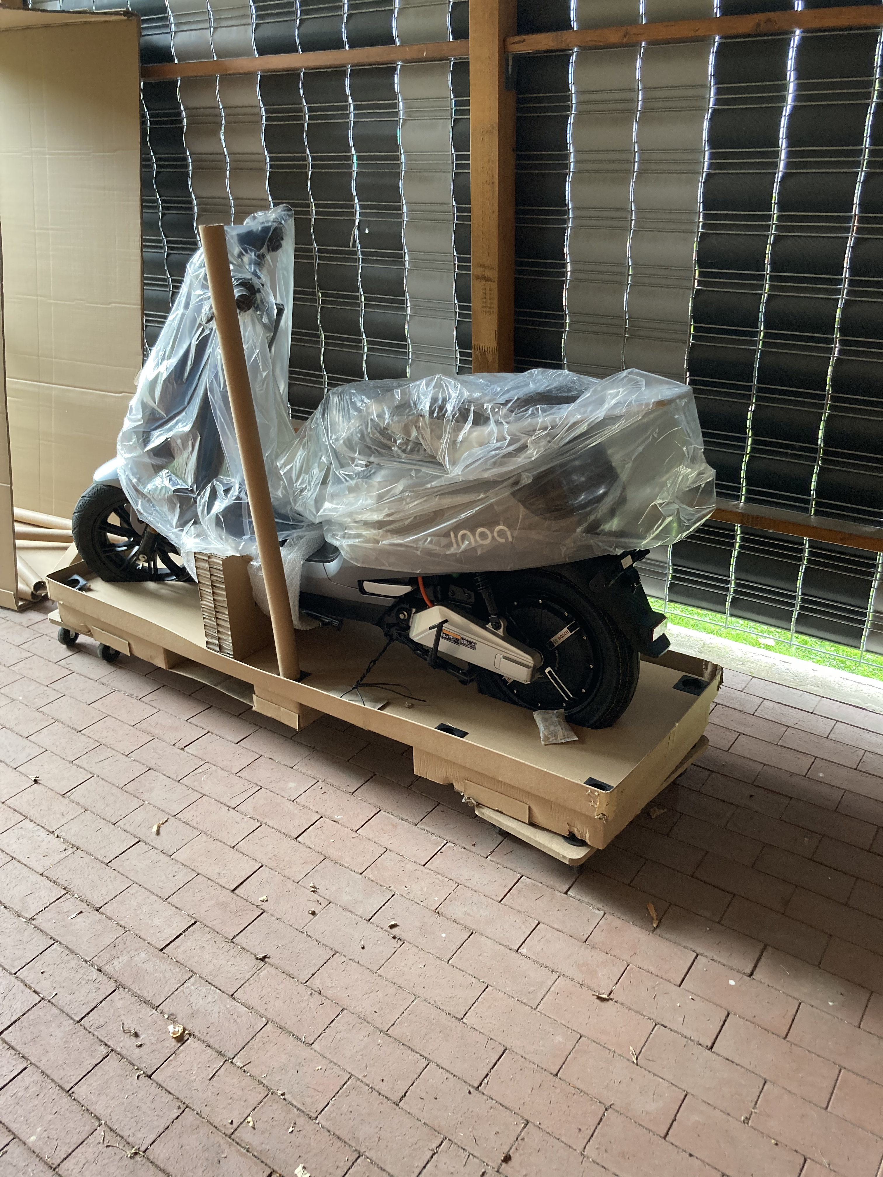Da meiner Frau der Inoa S5 doch zu hoch ist und sie beim anhalten Schwierigkeiten hat mit den Füßen halt zu bekommen,haben wir für sie noch einen Super Soco CUX bestellt und heute ist der Cu bei uns eingetroffen