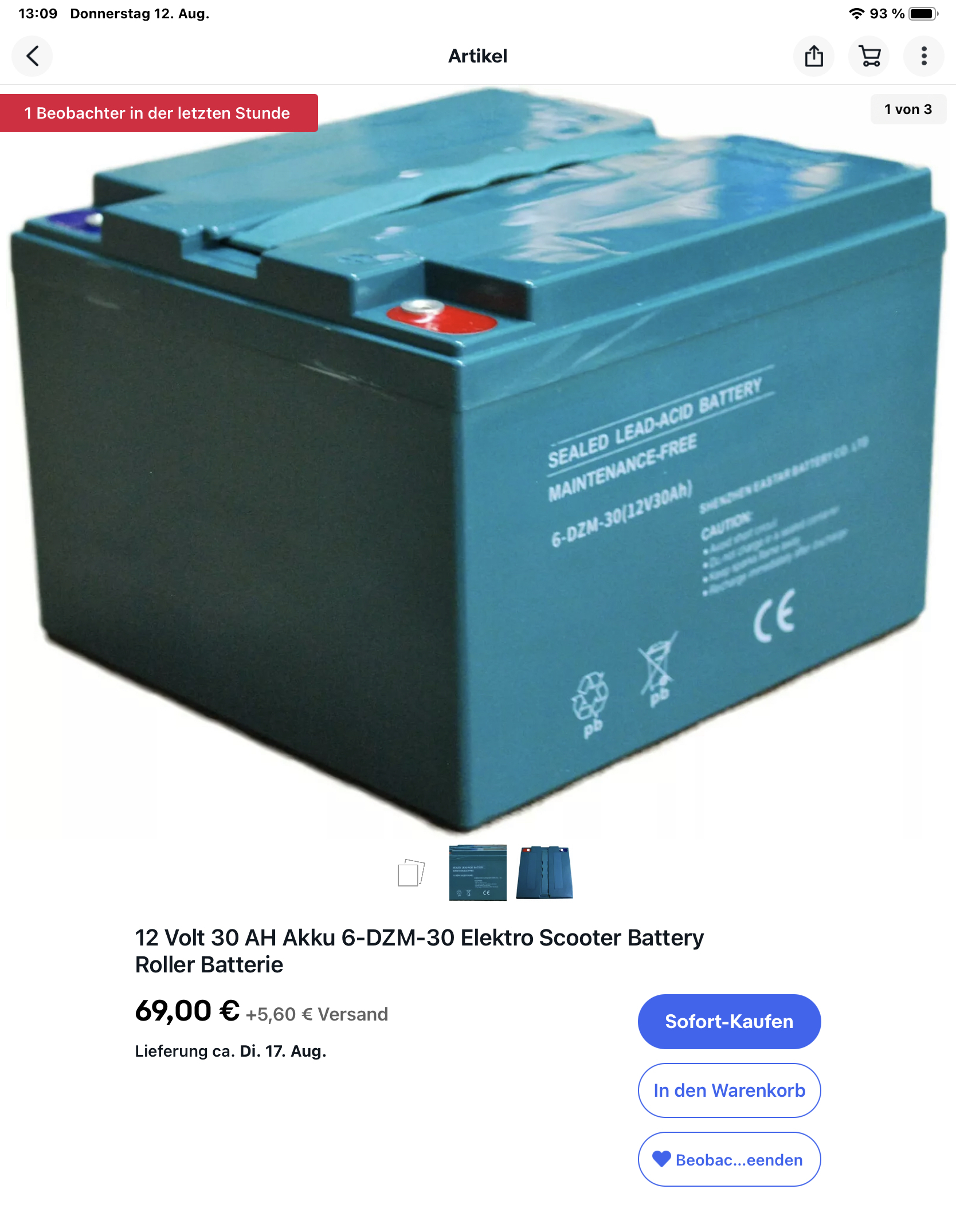 30km damit gefahren und zeigt fast immer noch voll an. Laut Vorbesitzer soll man damit über 60 km fahren und dann zeigt er immer noch mindestens 1/4 voll an danach hat er Ihn aber geladen.