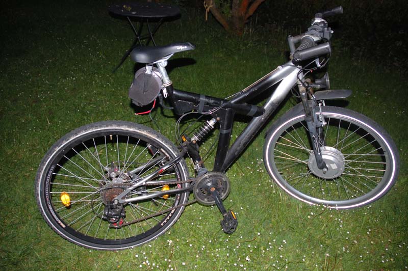 Achtung: Laien beware! Das ist keine Bauanleitung , sondern die Beschreibung eines Pedelecs, welches aufgrund einer Wette innerhalb einer halben Stunde zusammengeferkelt worden ist. Insbesondere der Akku ist