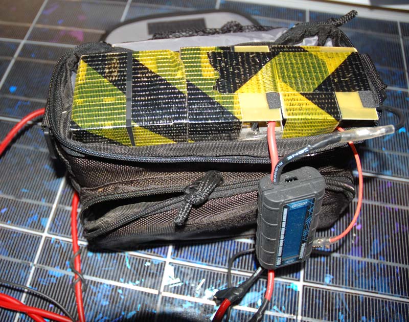 Und 360W LiPos (10s Phylion) in der Kameratasche für den Lenker , sind aber mit dem Phylion BMS nur bis 1,5C ( 15A /535Wp) gut, für mehr sollten es 123er , Headways oder Konions sein.