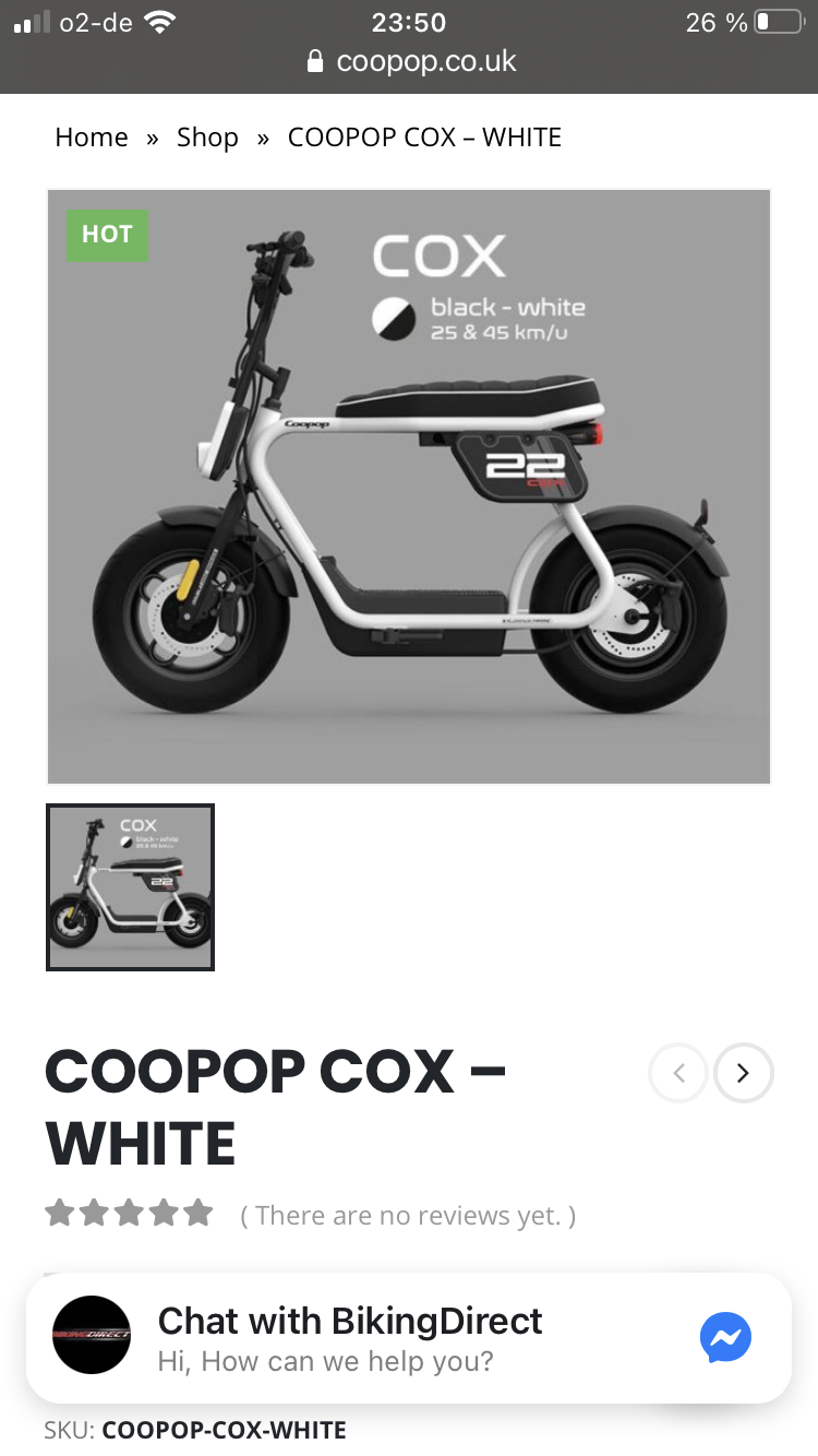 Nun ist in Nachbarort ein Händler der Coopop Rugged (Gelände) und Coopop Cox (Straße) verkauft.