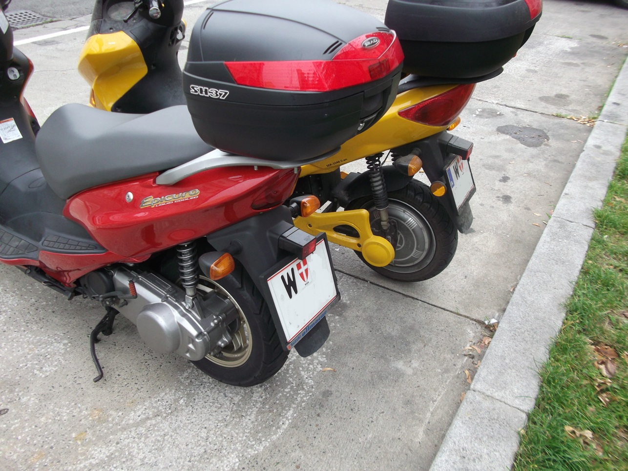 Zwar ist der Solar Scooter Sport neu nicht mehr erhältlich; aber andere Eroller mit dieser Karosserieform sehr wohl noch. Einmal habe ich den meinen neben einen Suzuki Epicuro gestellt: