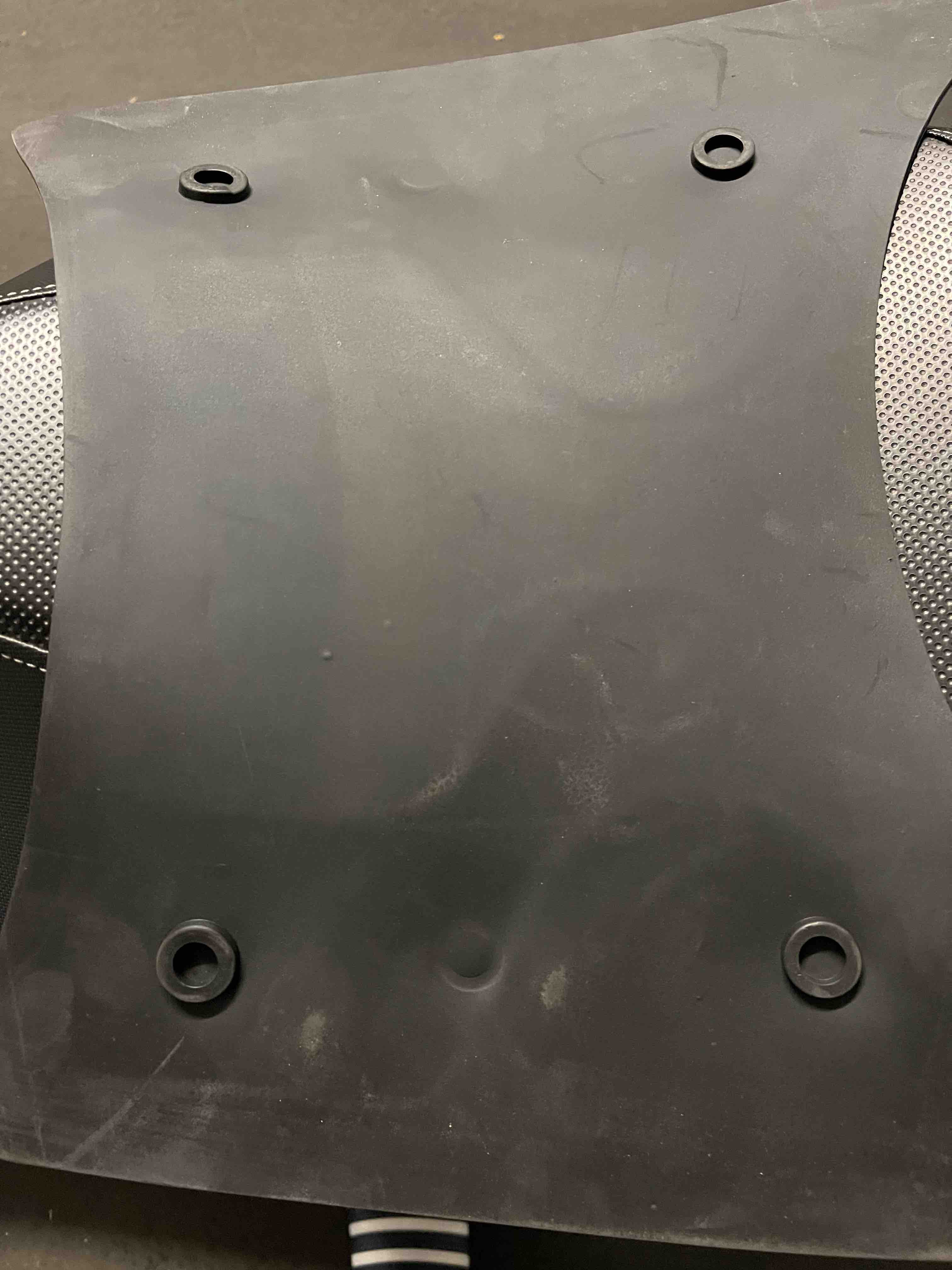 die Knubbel müssen raus, ich habe die Fußmatte von beiden Seiten zusätzlich mit Klebestriefen - Klettband einfach befestigt.