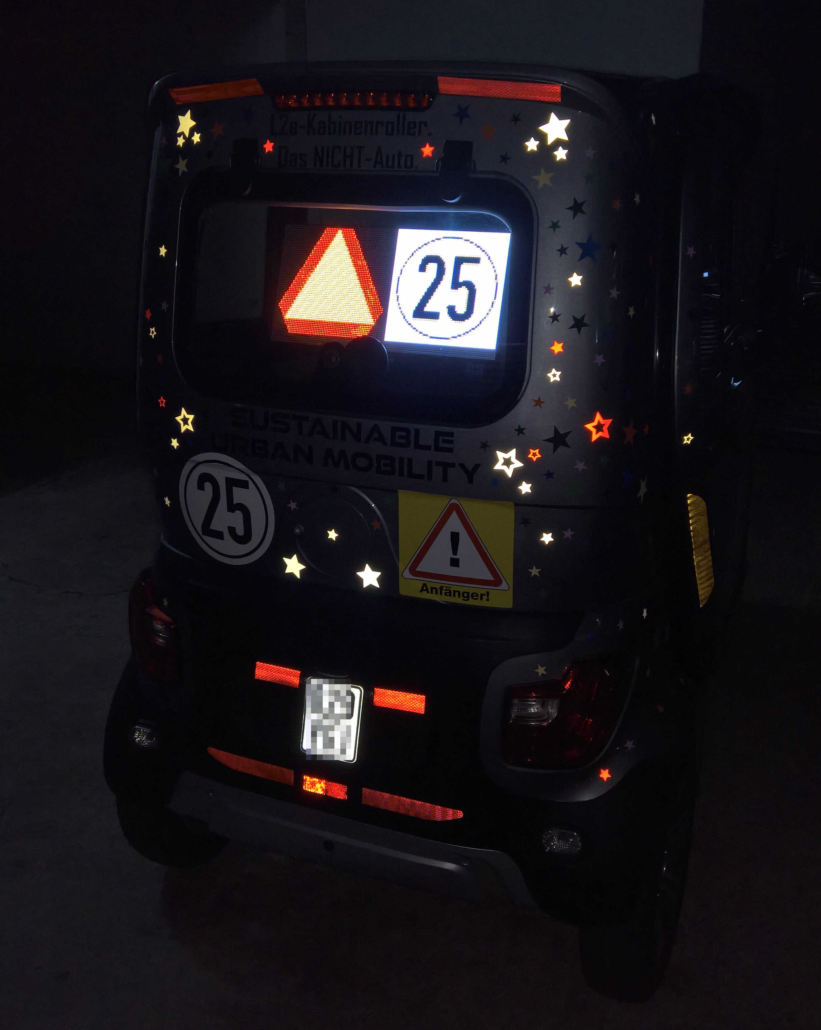 Ich fahre auch einen 25 km/h Kabinenroller. An meinem ist kein 25er Schild drann und ich fahre auch sicher.