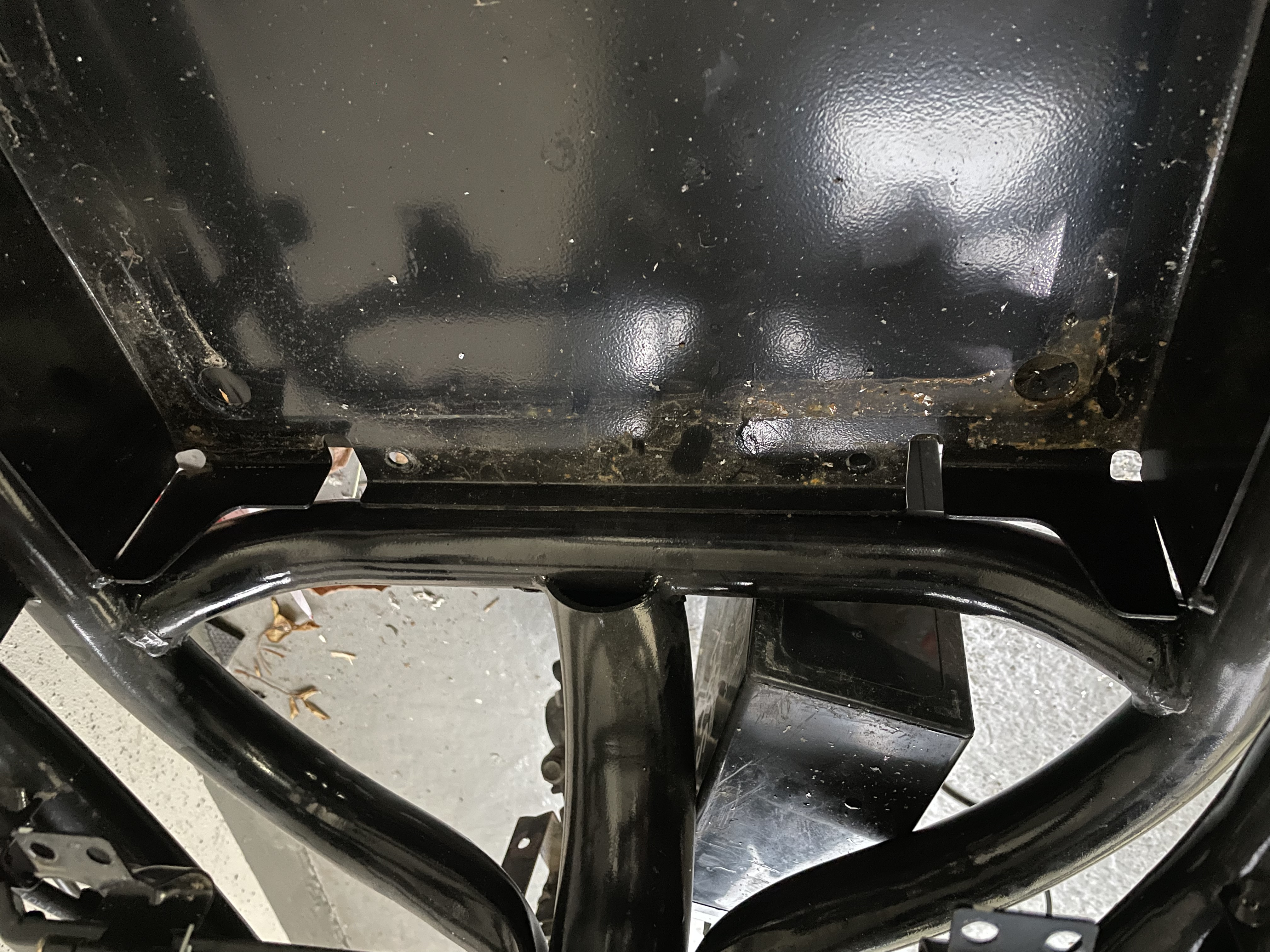 Wenn ich etwas Zeit habe, dann schraub ich mal die Verkleidung komplett ab und schau mir alles mal genau an. Dabei werde ich auch gleicht mal alles überprüfen auf festen Sitz und nach Rost ausschau halten.