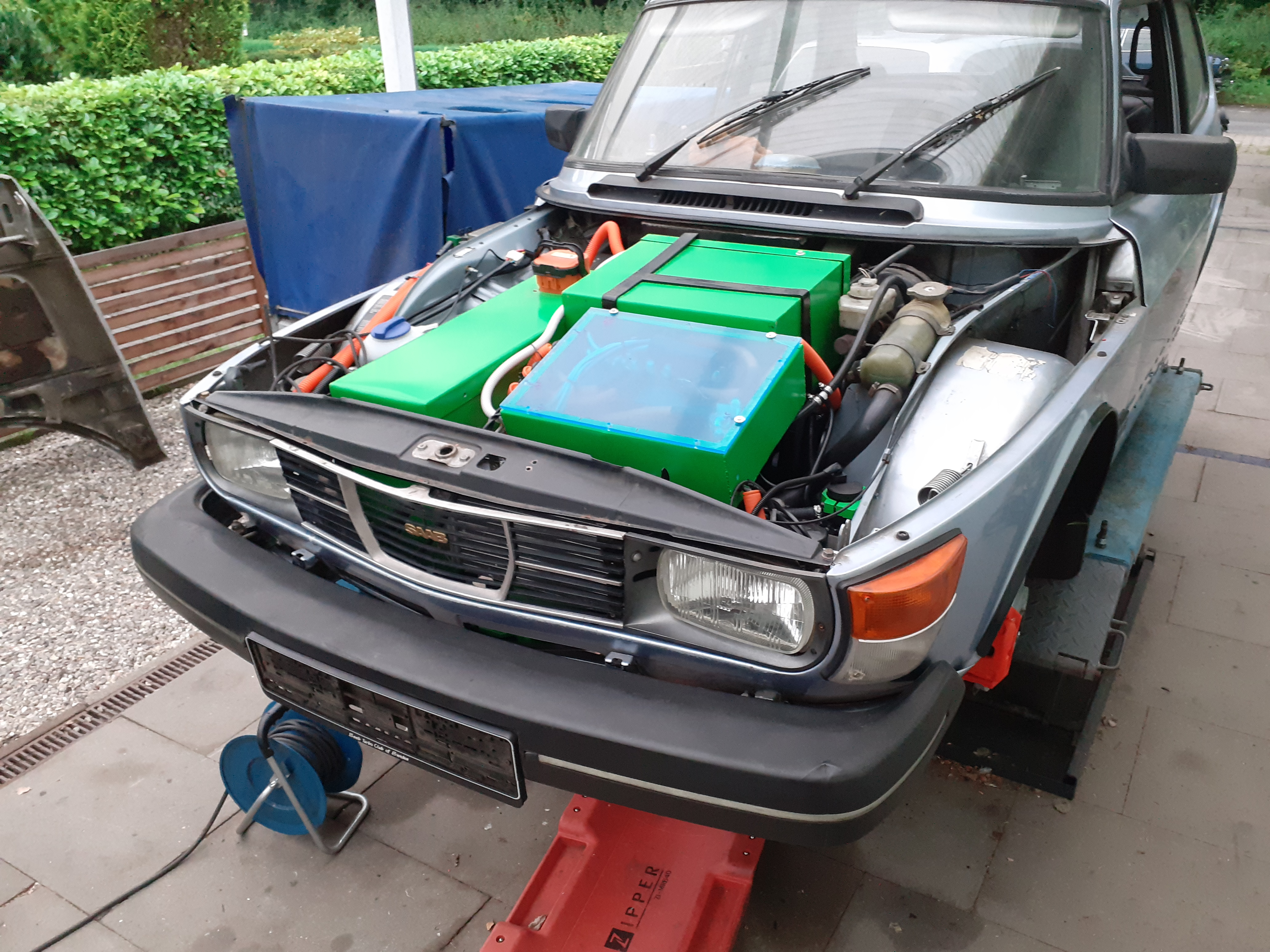 Zu meinem Ansatz: Ich stehe auf das Bauen und ich stehe auf Blech. Darum die Umbauidee. Hier ein Bild vom gerade abgeschlossenen Projekt, Umbau eines Saab 99 auf E Antrieb. Ich denke daher, dass mir das auch mit der Simson gelingt.