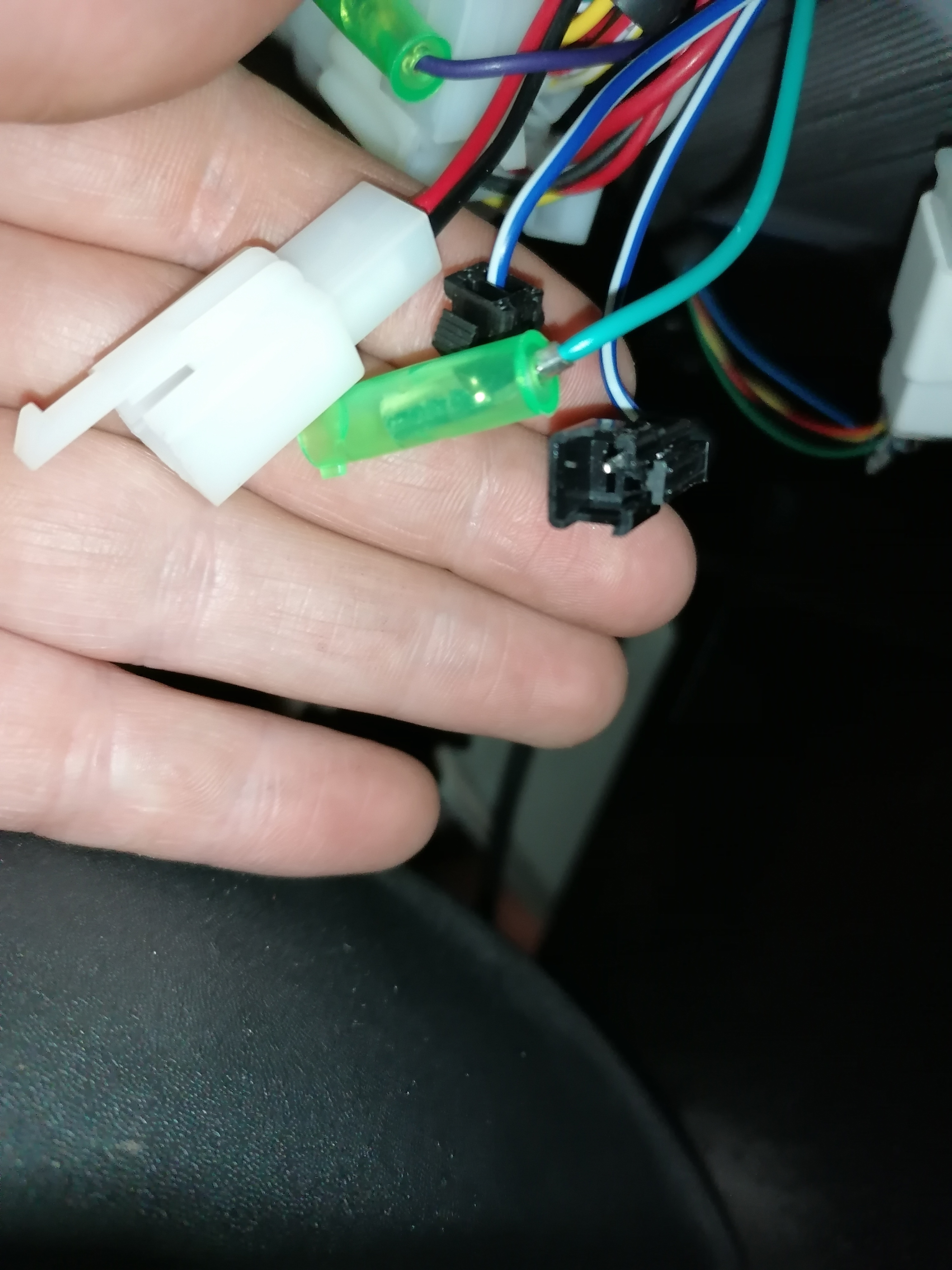 Eine ähnliche Steckverbindung habe ich auch gefunden, allerdings in blau-weiss. Das an und ab stecken hat aber keine Auswirkung. Sämtliche Elektrik bleibt unverändert.