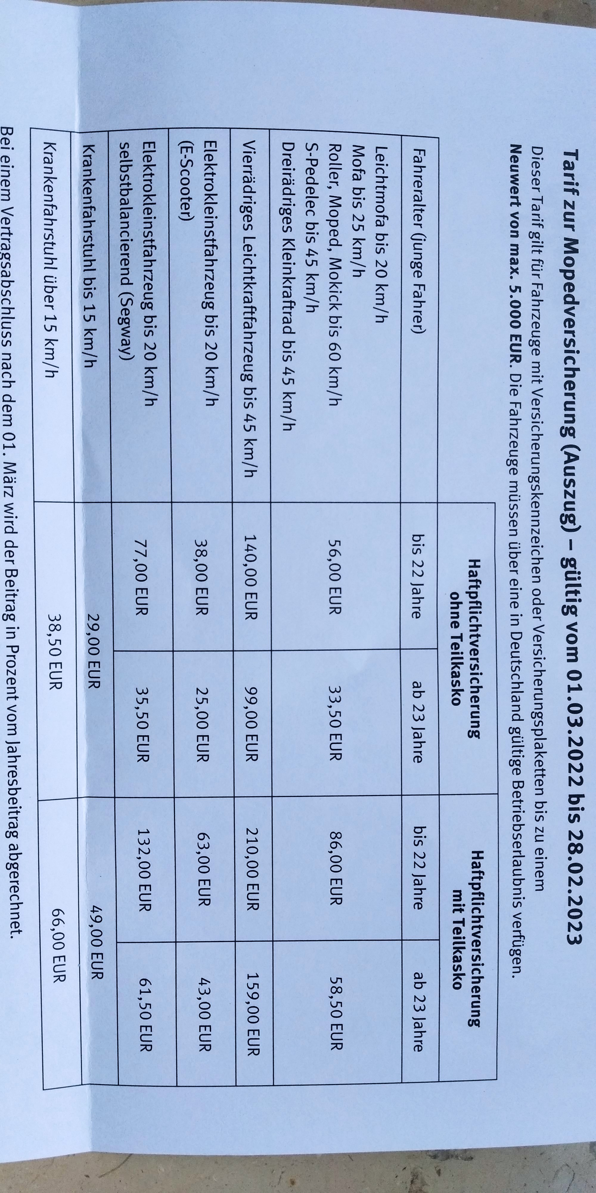 Re: Versicherung Kabinenroller / Leichtkraftfahrzeug / L6e 2022