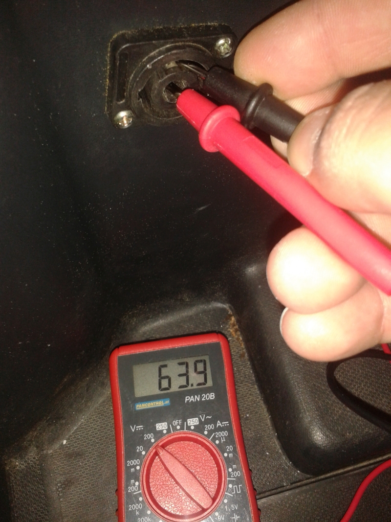 Sowohl an der Ladebuchse als auch am Stecker, der die Ladebuchse mit dem Batterien verbinden liegen ca. 64V Volt an.