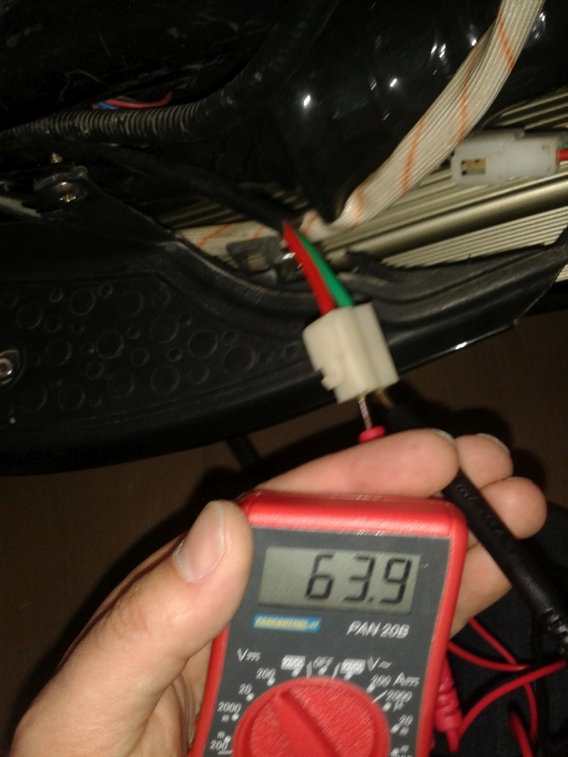 Wenn ich den Stecker des Ladegerätes in die Ladebuchse des Rollers stecke und dann am Stecker des Ladegerätes messe, komme wieder genau auf 63,9V, also genau das was die Batterien hergeben.
