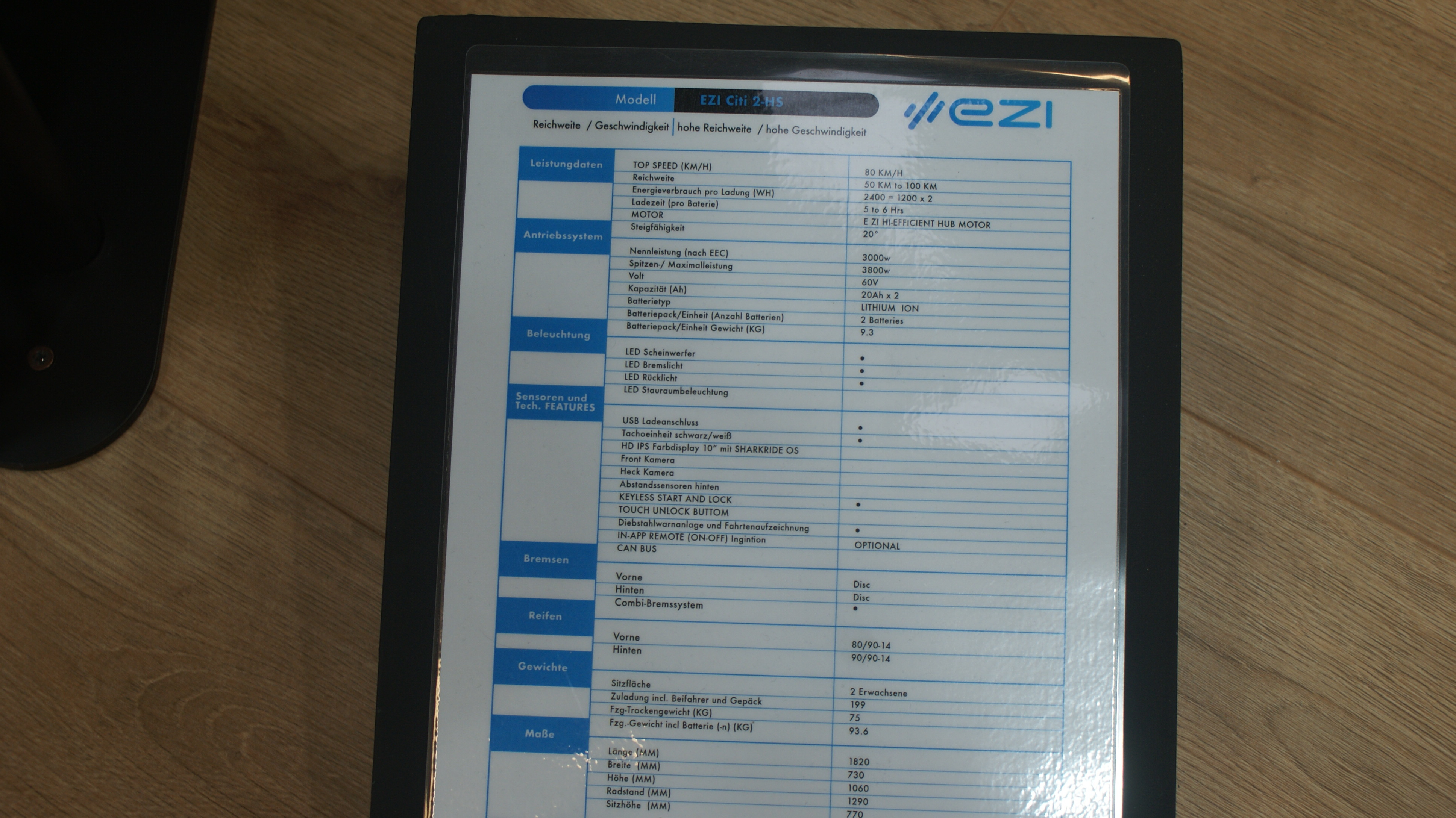 Ergänzt wird auch noch mit Bild vom Ladeanschluss oder anderen Details wie Nabenmotor oder Mittelmotor und Kette oder Riemen.