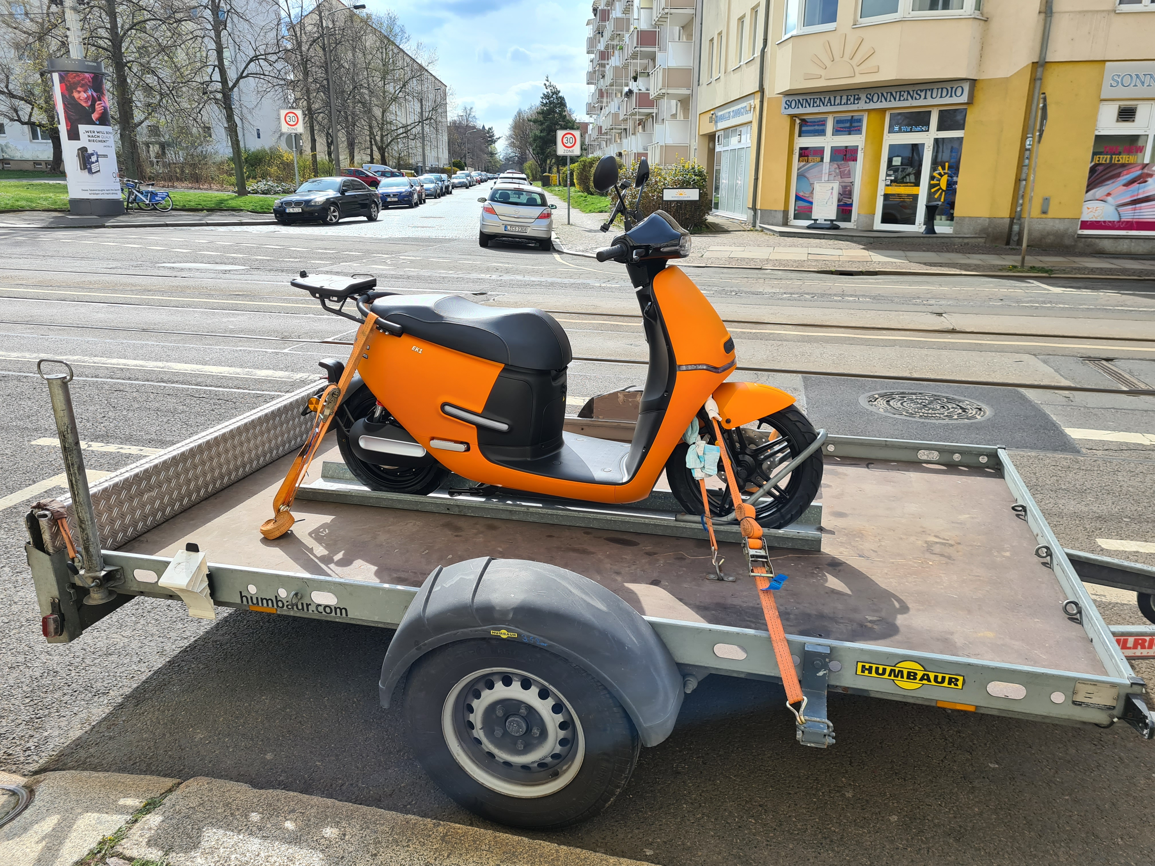 da ich mir im Vorfeld meines Kaufs die Frage gestellt habe, ob und wenn ja wie gut man einen EK1 auf einem Hänger transportieren kann, hier ein kleiner Erfahrungsbericht: