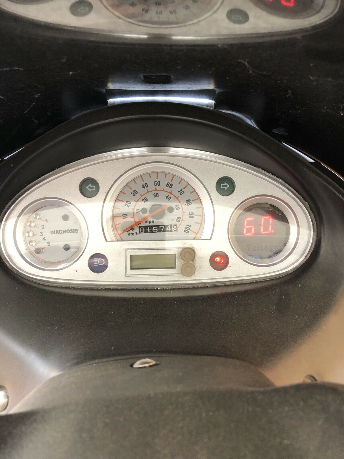 Die linke Anzeige mit Diagnosis draufstehen hat links wohl ein grobe Batteriestandsanzeige, und die Diagnose sind die zwei LEDs rechts im Instrument. Die könnten wohl verschiedenes anzeigen, z.B. ob der Seitenständer ausgeklappt ist und deswegen die Karre nicht fahren will, oder die Batterie langsam zur Neige geht, oder dass geladen wird, oder oder oder...