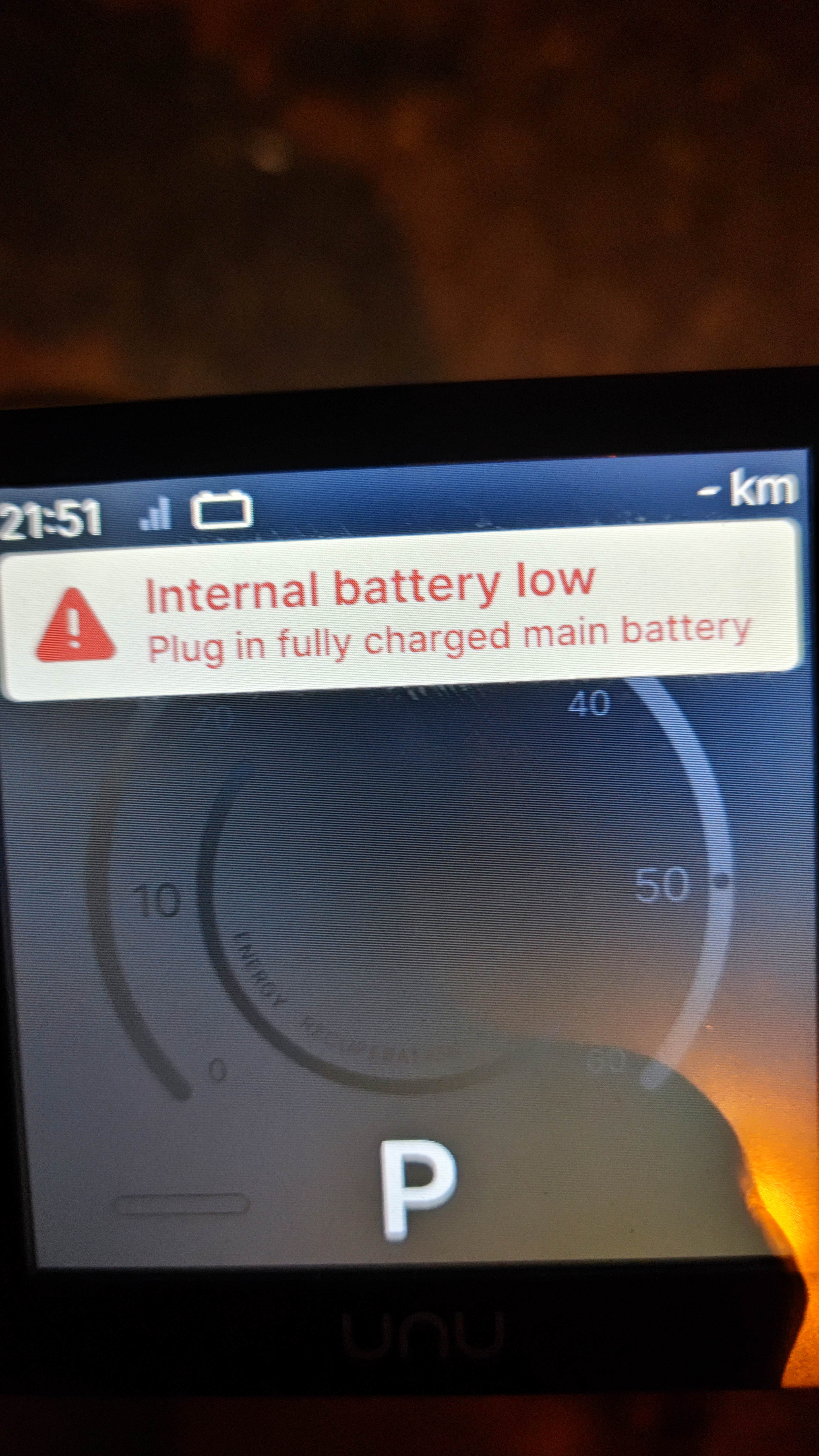 "Internal Battery low" Irgendwann kam auch der Countdown, dass der Roller in wenigen Sekunden ausgeschaltet wird.
