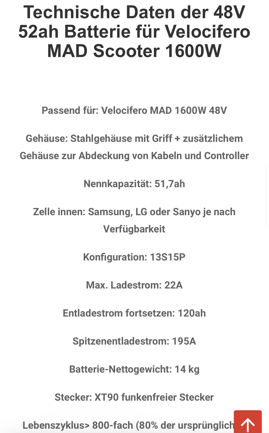 Mein 48V Bleisäure-Akku meines Velocifero Mad 1600 mit 810W brushless Motor ist defekt und ich brauche einen neuen Akku.