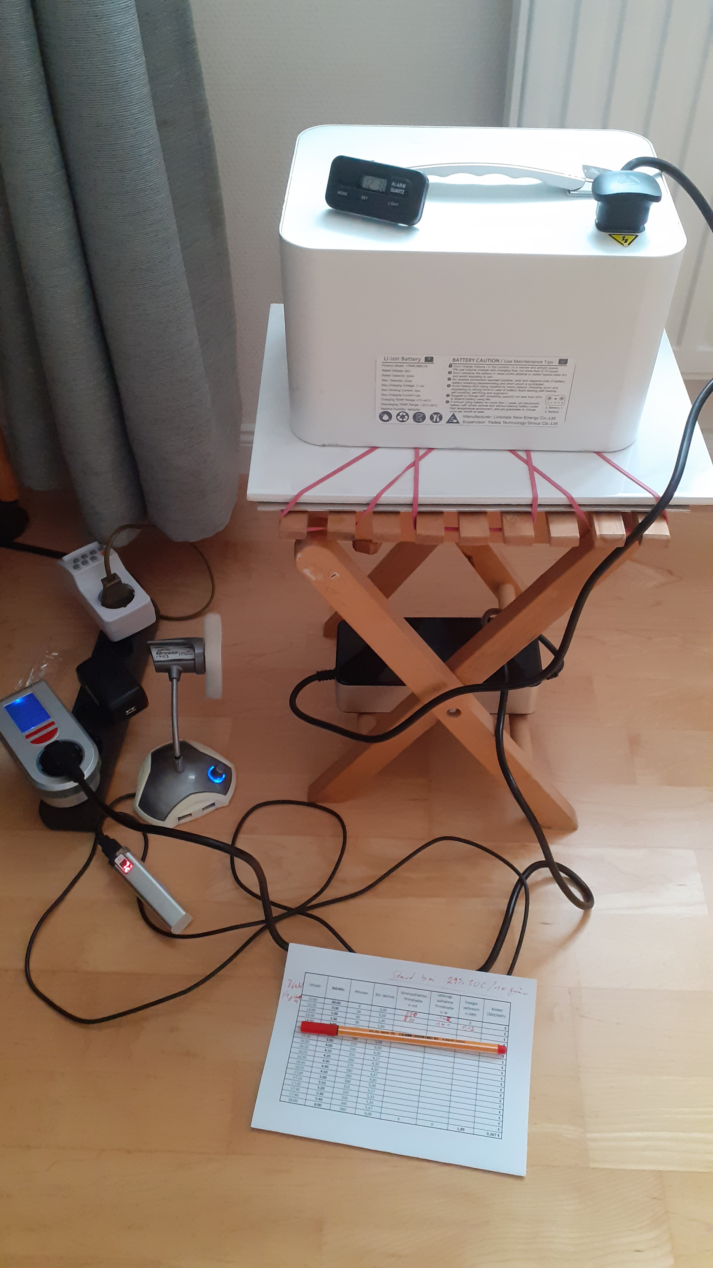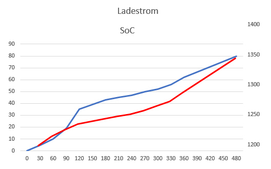 PaddyLectric hat die Dose ja in seinem Kanal auch vorgestellt und dabei eine Tabelle erstellt, mit der man den Ladezustand (SoC) aus der momentanten Leistungsaufnahme ableiten kann. Interessant, das wollte ich genau wissen !