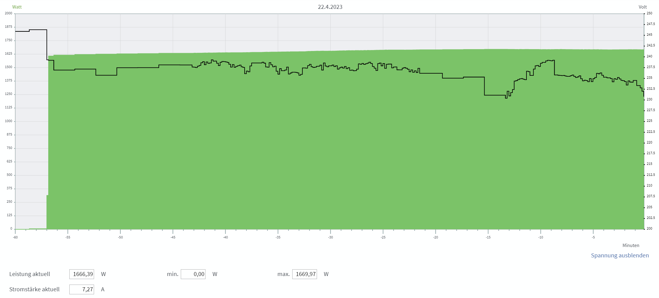 59% 137V*12A=1.644W; am Zähler 1,78kW 92,4%
